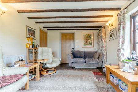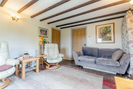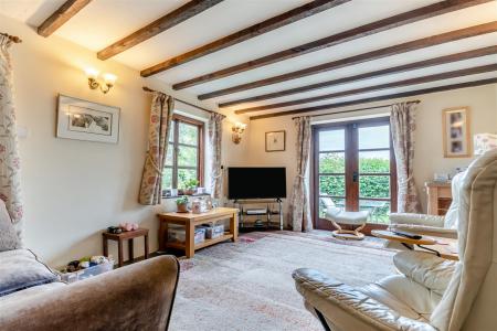 Living Room - 4.45m x 3.35m (14'7 x 11'20) - Flagstone flooring, radiator, television point, exposed wooden beams, front aspect double glazed windows, side aspect double glazed double doors to a lovely seating area with beautiful countryside views.