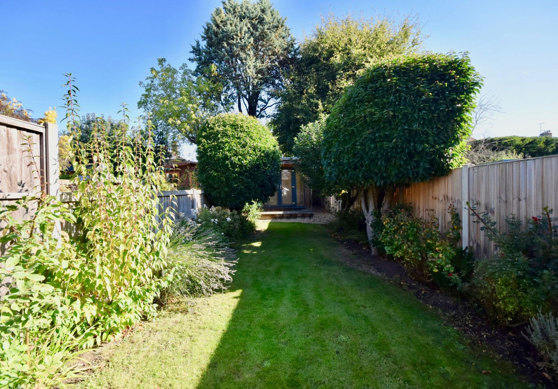 Externally to the rear is a lovely and private garden with immaculate lawn, patio, and a wonderful garden office. There is also side wooden gated access.