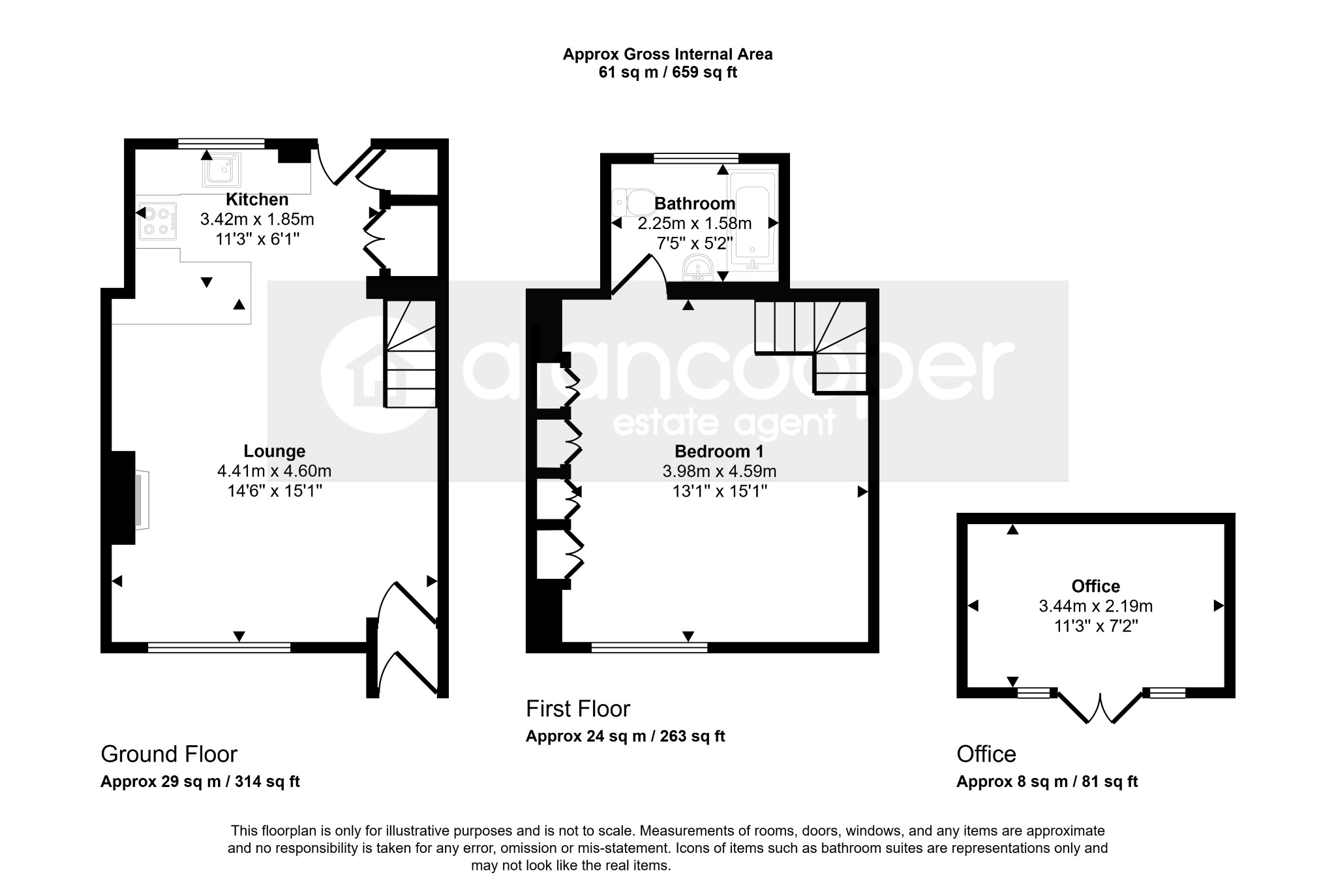 Agents NoteWe have not tested any of the electrical, central heating or sanitary ware appliances. Purchasers should make their own investigations as to the workings of the relevant items. Floor plans are for identification purposes only and not to scale. All room measurements and mileages quoted in these sales details are approximate. Subjective comments in these details imply the opinion of the selling Agent at the time these details were prepared. Naturally, the opinions of purchasers may differ. These sales details are produced in good faith to offer a guide only and do not constitute any part of a contract or offer. We would advise that fixtures and fittings included within the sale are confirmed by the purchaser at the point of offer. Images used within these details are under copyright to Alan Cooper Estates and under no circumstances are to be reproduced by a third party without prior permission.