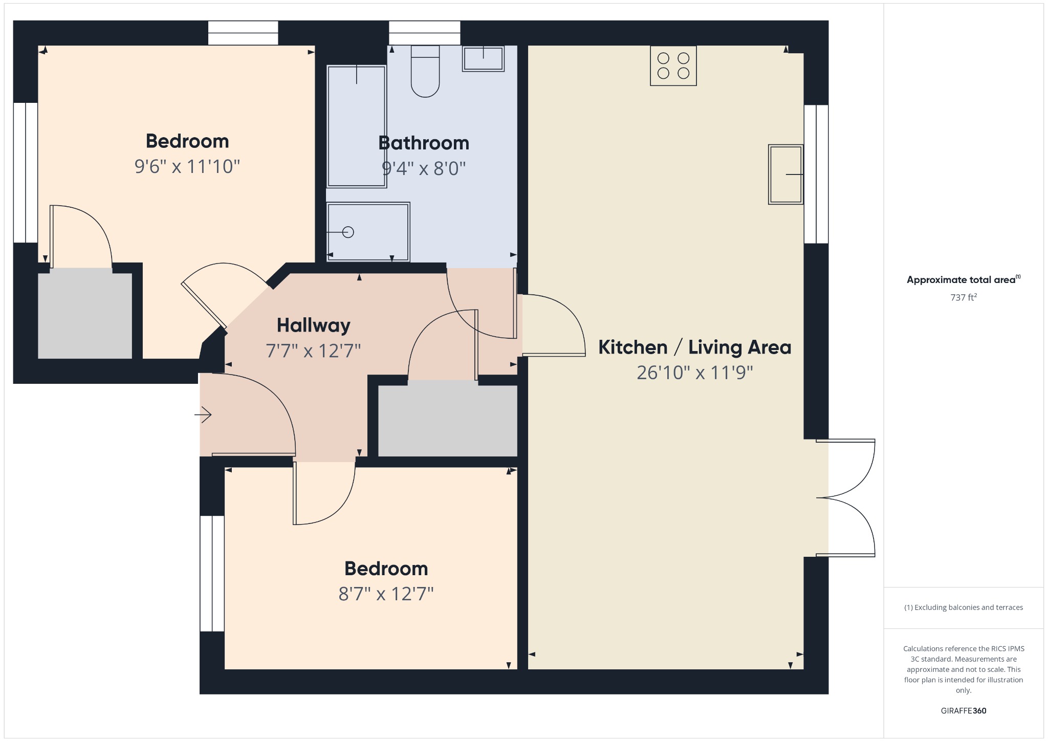 - 2-Double Bedrooms with Bedroom Housing Built-in Wardrobe Cupboard