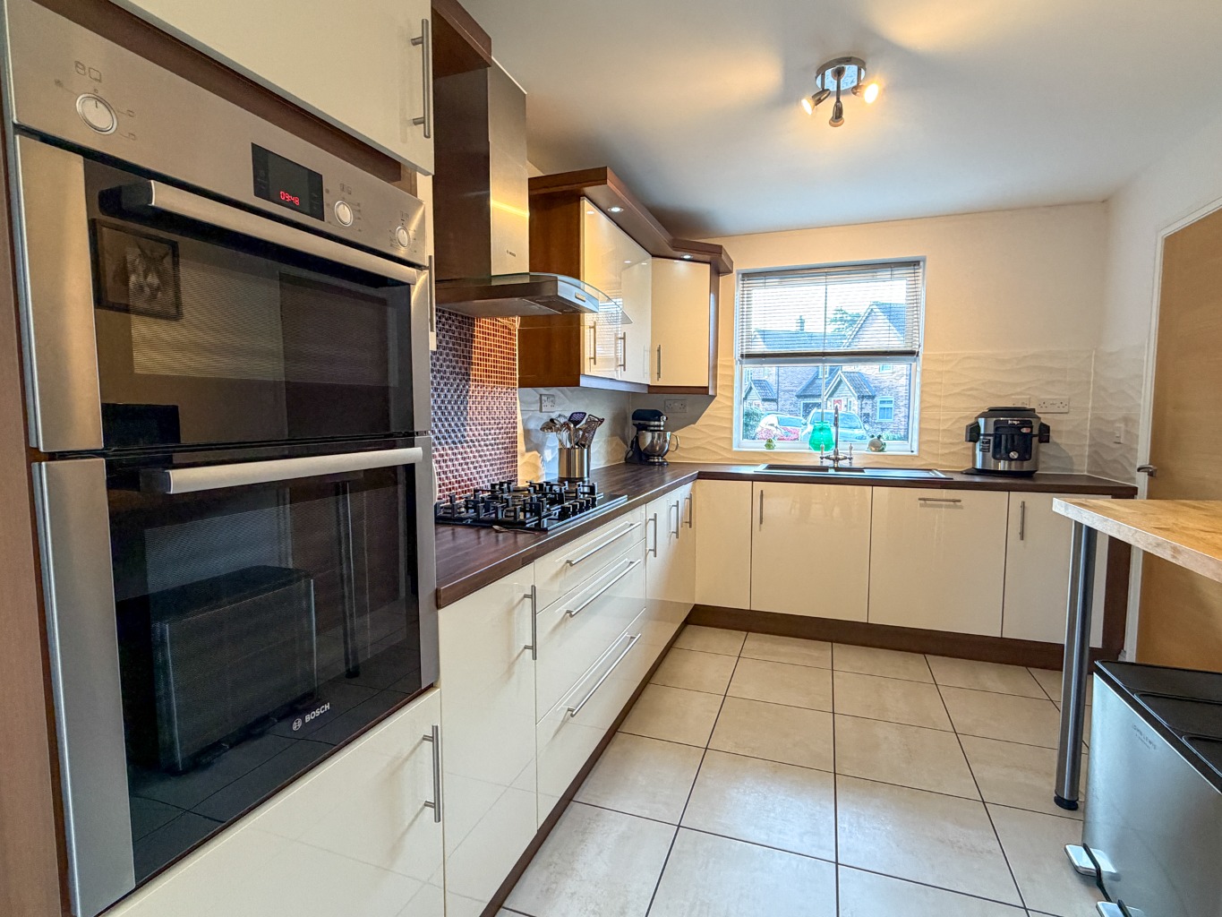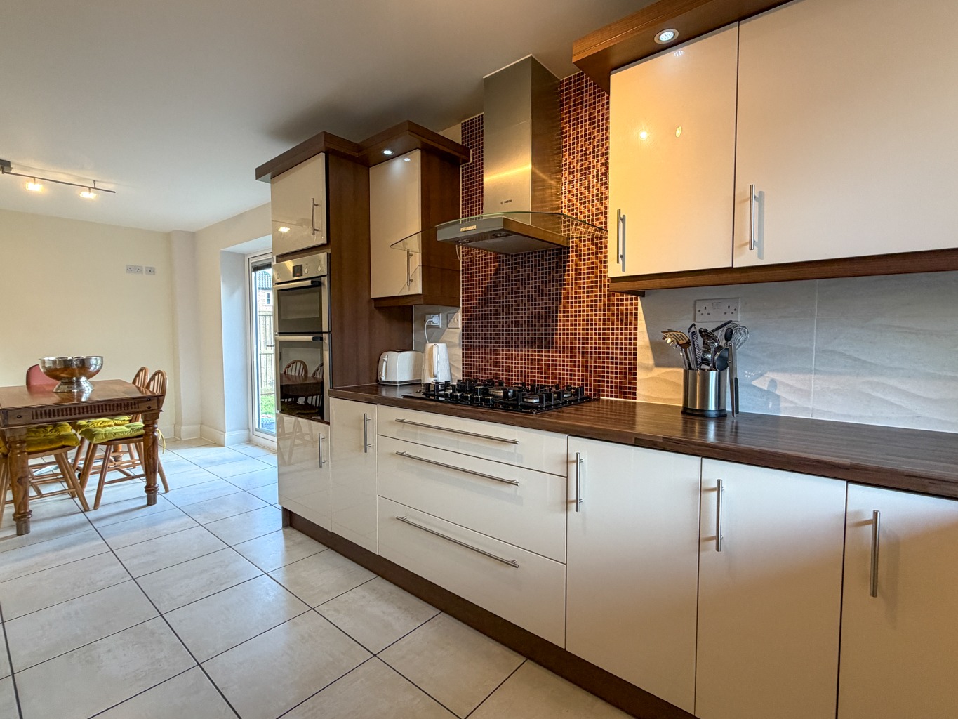 - Fitted Kitchen/Diner with Built-in 5 Ring Gas Hob, Extractor Hood & Double Electric Oven, Integrated Dishwasher & Double Glazed French Doors opening out to the Rear Garden