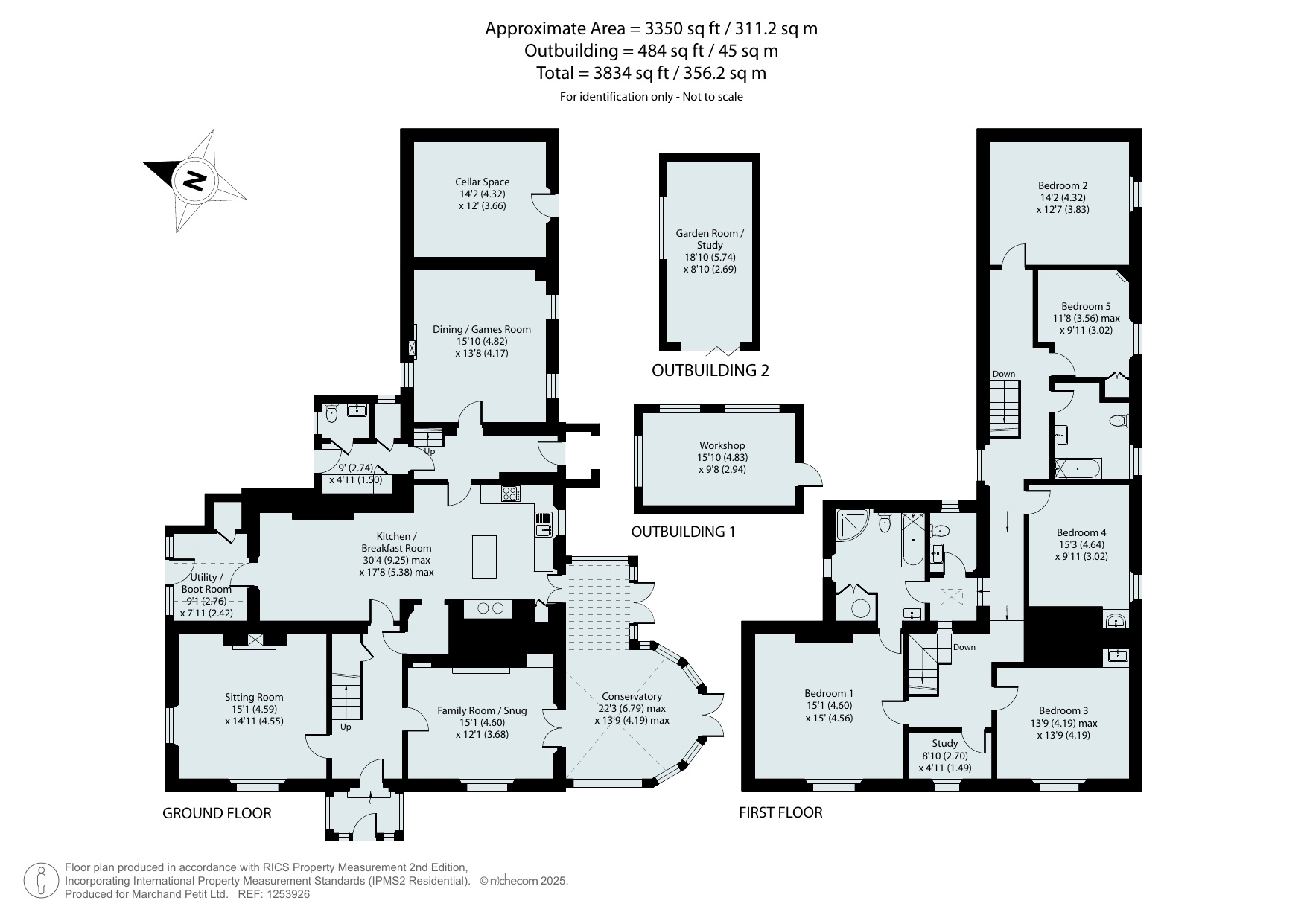 The second-floor layout gives the feeling of two wings with two staircases and a long landing connecting the rooms. Bedrooms 1 and 3 have a westerly orientation enjoying wonderful views. Bedroom 1 has an ensuite which connects to a landing with an additional WC. Between Bedrooms 1 and 3 is a charming study. Bedrooms 2, 4 and 5 have a southerly orientation and share the family bathroom.
