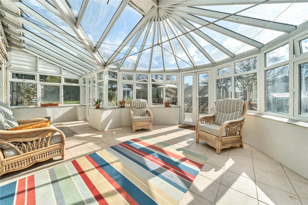 An entrance porch leads through to an inner hall with two reception rooms either side and stairs to the first floor, providing a dual aspect sitting room and a family room/snug. In the heart of the property, the charming and inviting kitchen/breakfast room, arranged with an array of base and wall units, central island, and an oil-fired Aga, creating the perfect family or entertaining space in the home. Off the kitchen is a boot room and a generous conservatory, predominantly glazed with doors leading out onto a patio. A further inner hall has a through passage to the garden and side patio, guest cloakroom and a 2nd set of stairs to the first floor. Off this hall is a dining/games room.