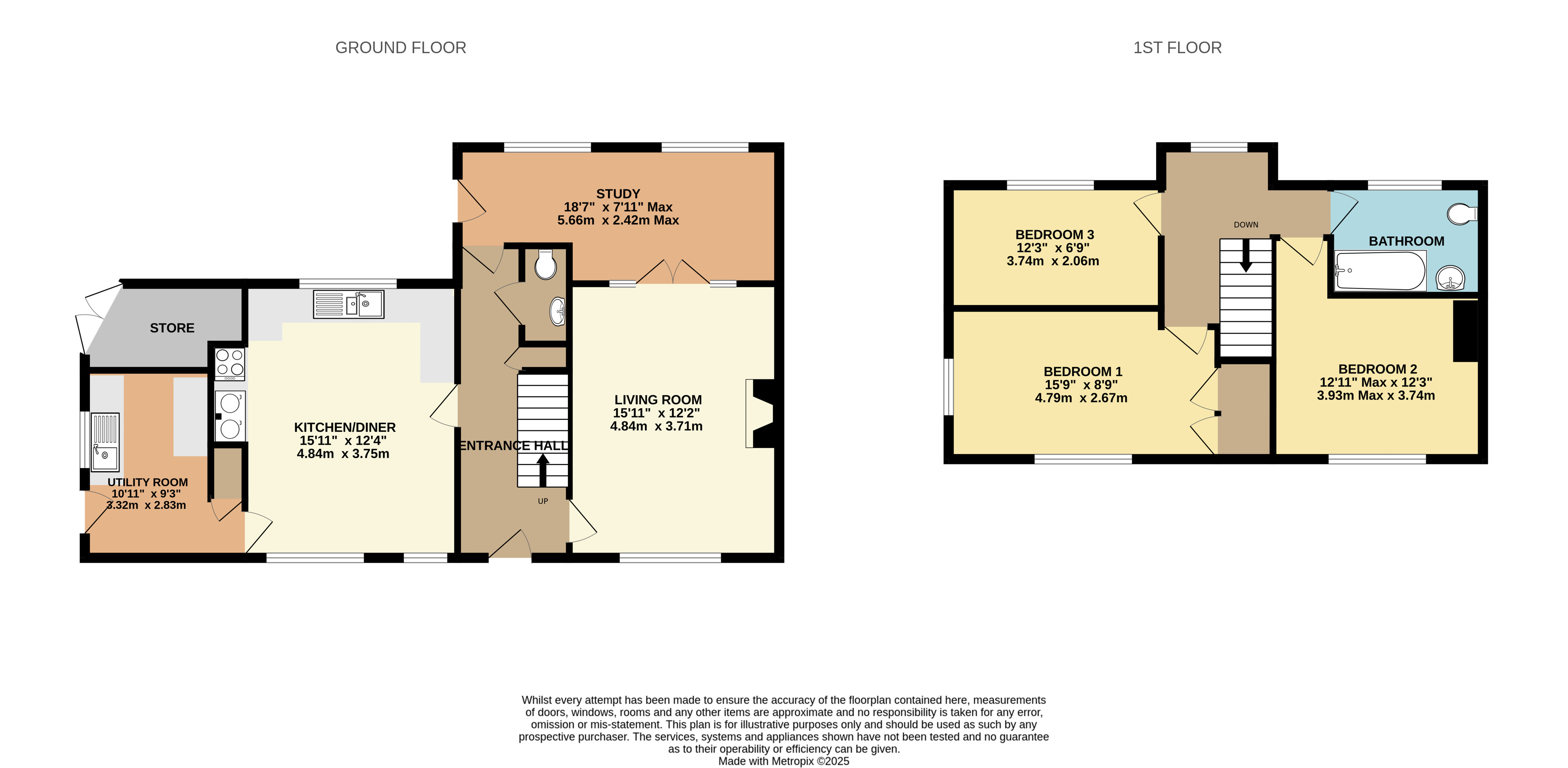 A front door allows entry to the cottage and into the entrance hall with stairs rising to the first floor and access to both understairs storage, a large understairs pantry and a modern downstairs WC with wash hand basin.