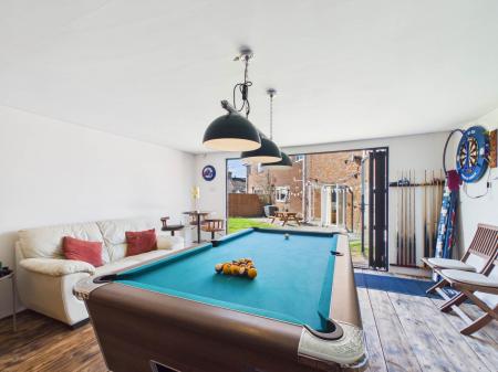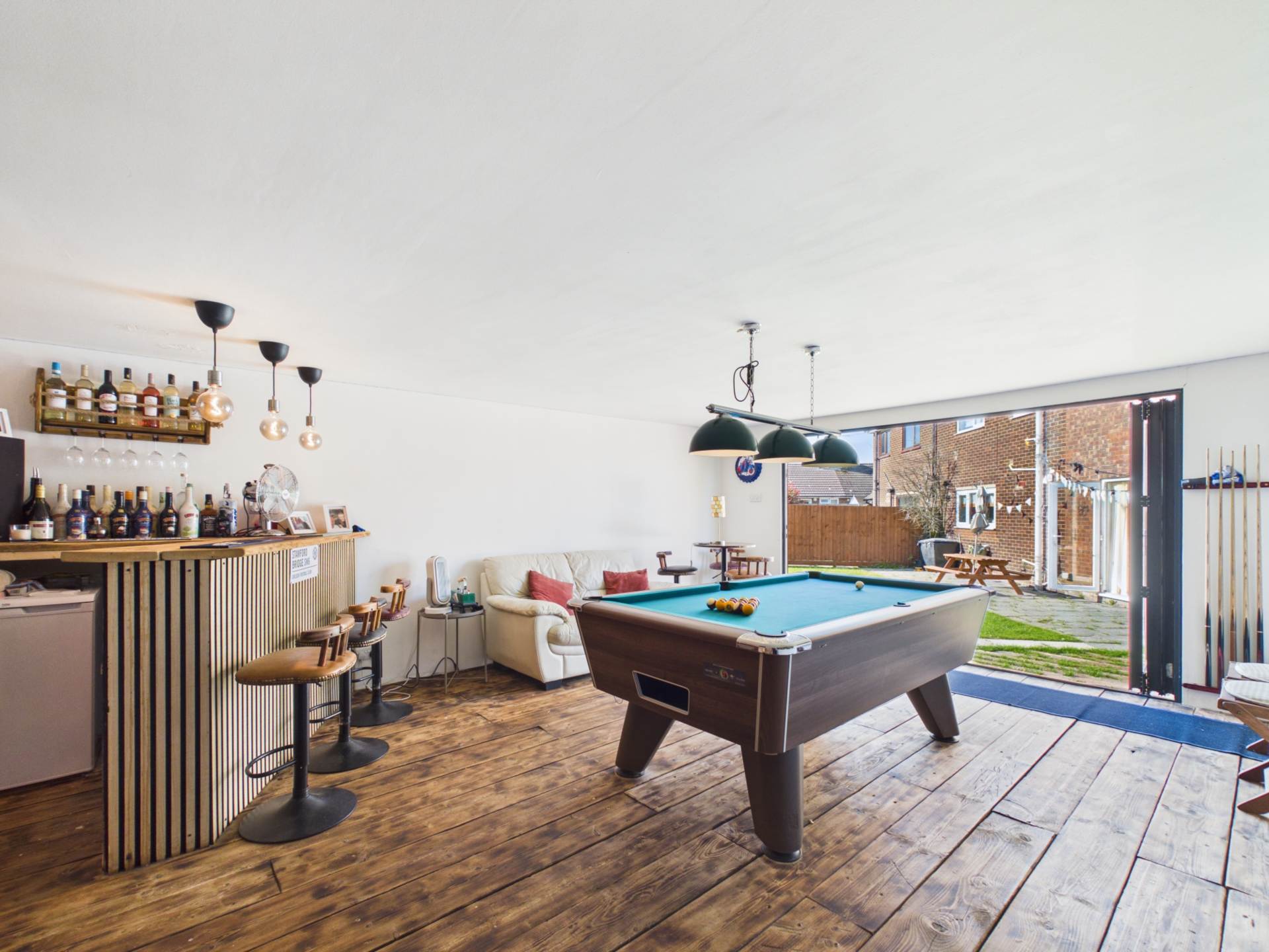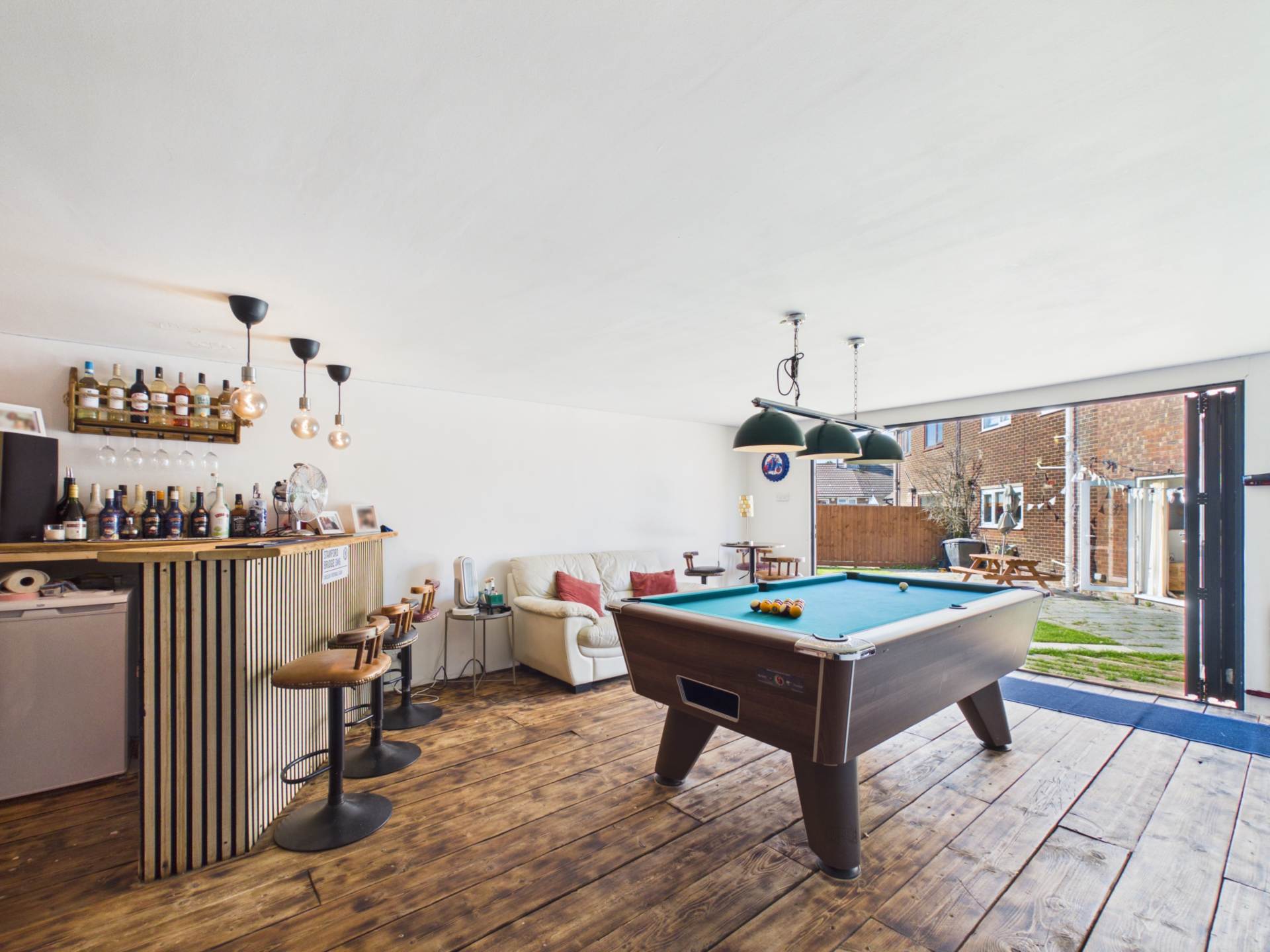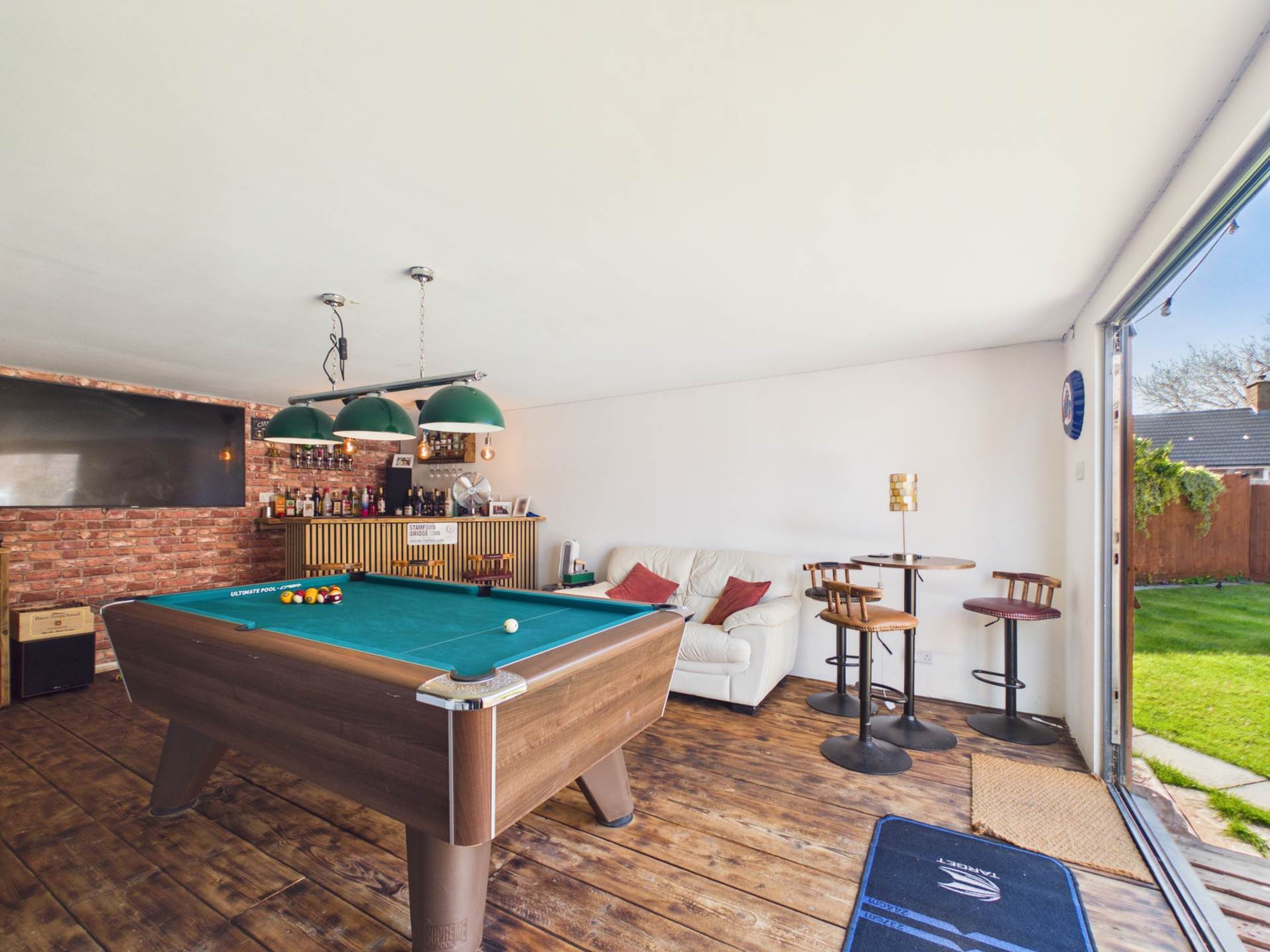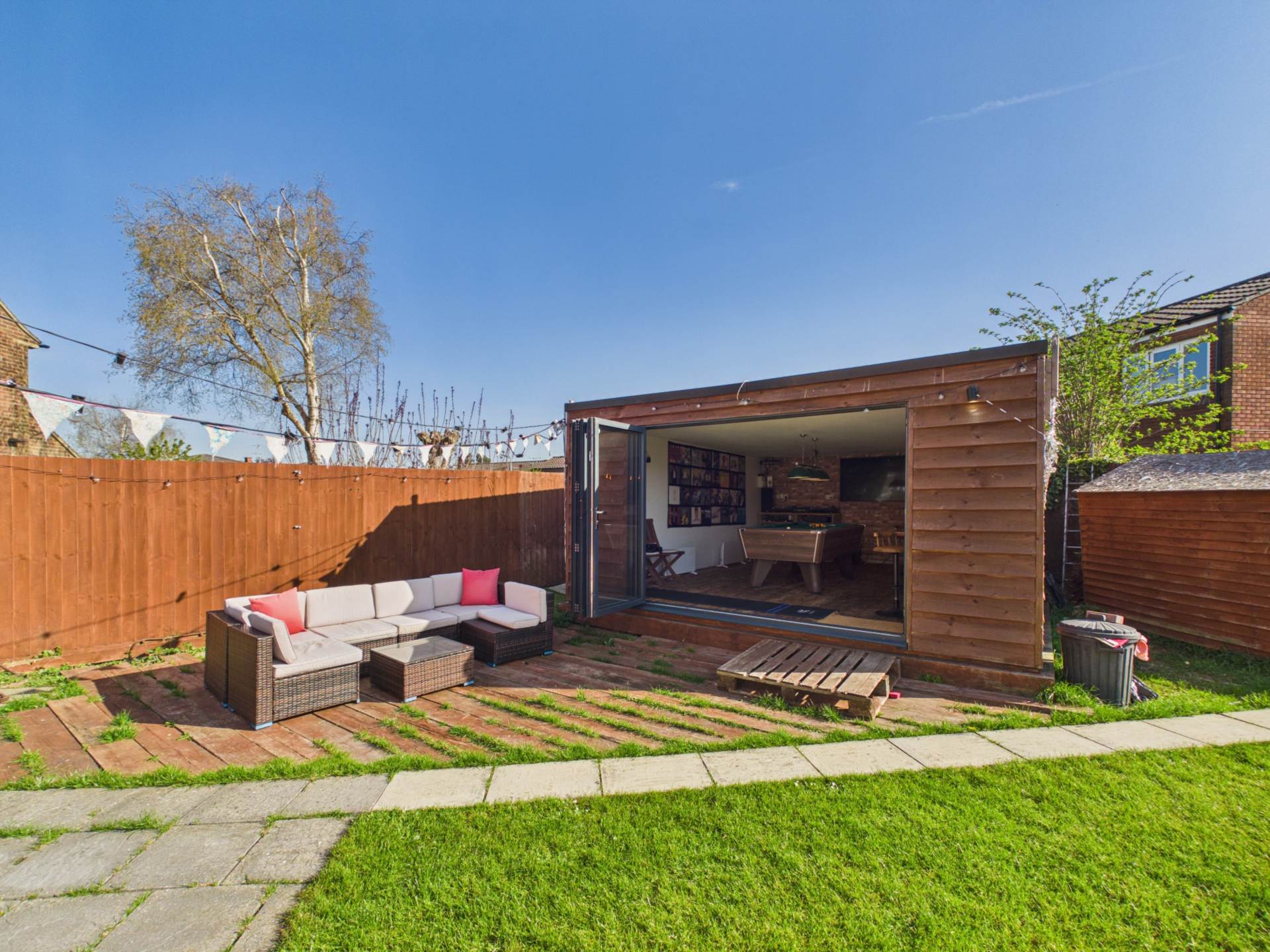 - Contemporary garden room with bar, seating & entertainment space