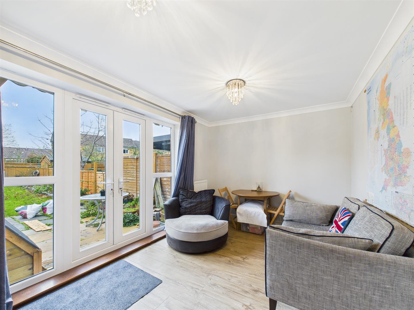 Accommodation - Upon entering, the entrance hall gives access to the principal ground-floor rooms and features stairs to the first floor, a useful storage cupboard and a convenient cloakroom. The kitchen is well-appointed, offering space for a cooker, fridge, dishwasher and washing machine, along with room for a small dining set. To the rear, the living room provides a bright and welcoming space, benefitting from double doors that open directly onto the garden.