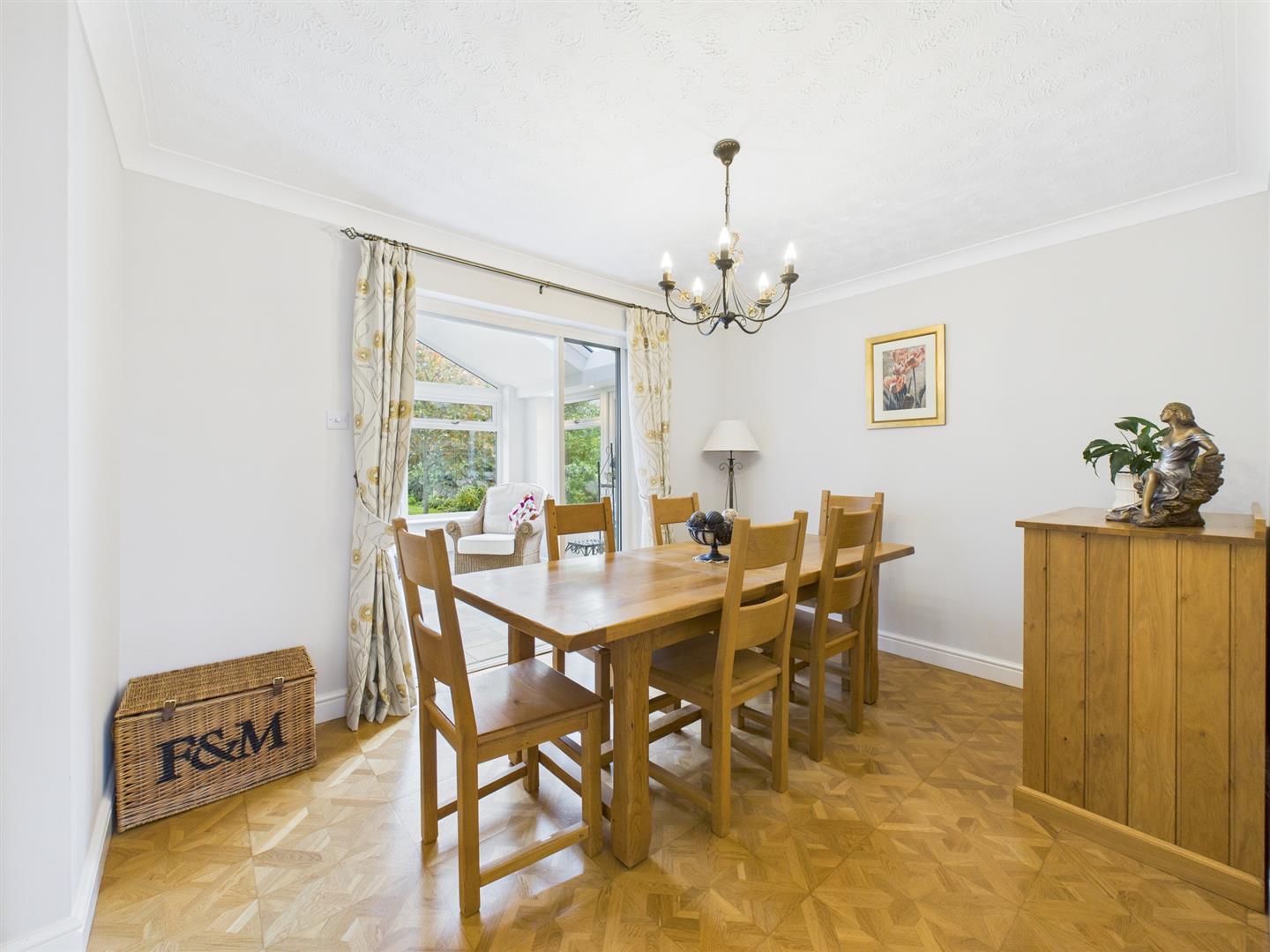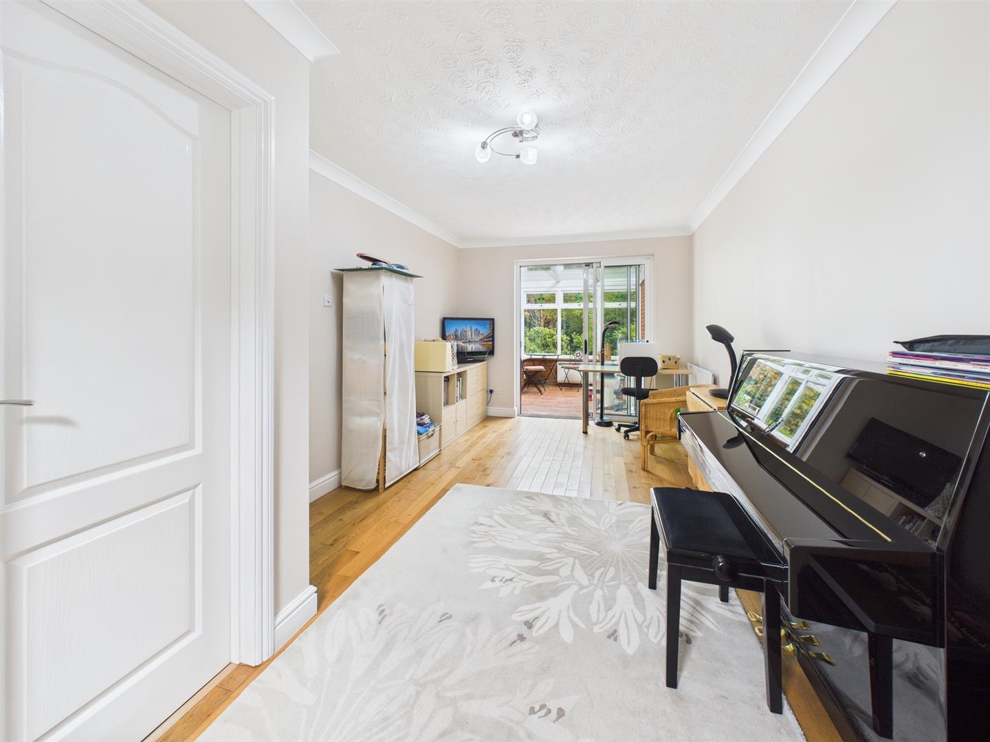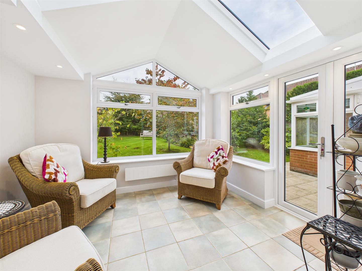The ground floor is arranged around a welcoming entrance hall that leads into a beautifully refitted kitchen, fitted with sleek cabinets, stylish worktops, integrated appliances including an induction hob, and larder, all complemented by a separate utility room. A dual-aspect living room offers an abundance of natural light, while the dining room flows into a light and airy garden room, creating an ideal space for entertaining. The layout also includes a downstairs cloakroom, a dedicated office for home working, and a versatile family room or fifth bedroom with its own utility area, offering excellent potential for a self-contained annexe. This is further enhanced by an additional conservatory overlooking the rear garden.