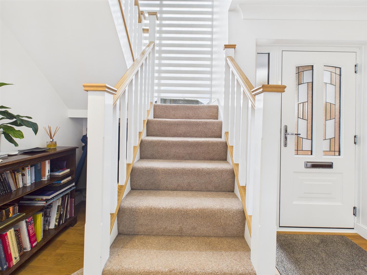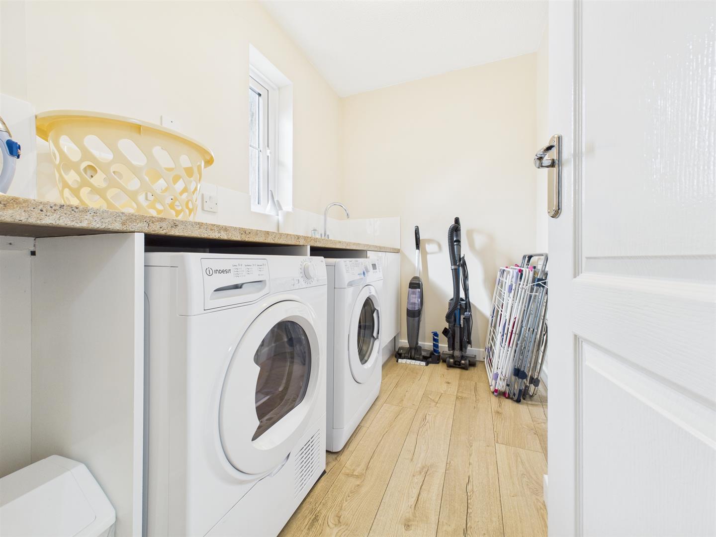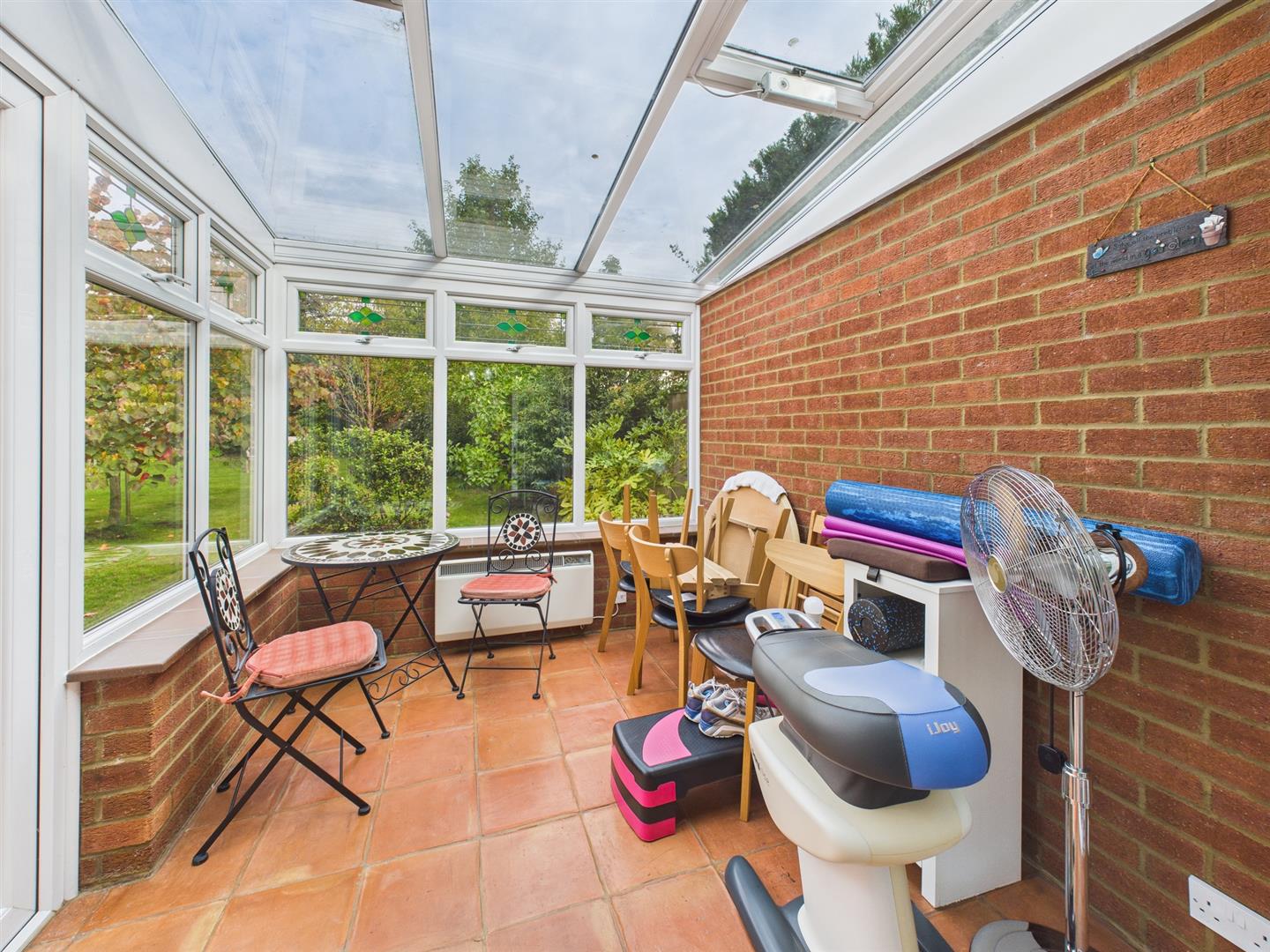The ground floor is arranged around a welcoming entrance hall that leads into a beautifully refitted kitchen, fitted with sleek cabinets, stylish worktops, integrated appliances including an induction hob, and larder, all complemented by a separate utility room. A dual-aspect living room offers an abundance of natural light, while the dining room flows into a light and airy garden room, creating an ideal space for entertaining. The layout also includes a downstairs cloakroom, a dedicated office for home working, and a versatile family room or fifth bedroom with its own utility area, offering excellent potential for a self-contained annexe. This is further enhanced by an additional conservatory overlooking the rear garden.