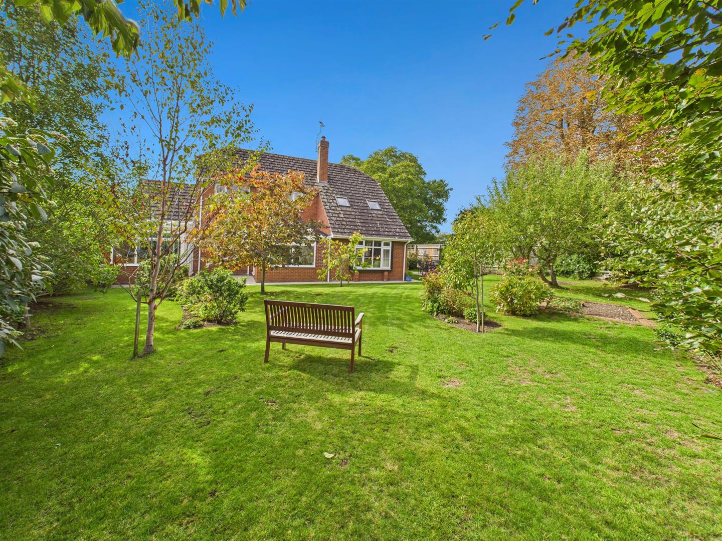 The outside space is equally impressive, with a beautifully landscaped wrap-around rear garden that features multiple patio areas, an expansive lawn, a variety of established trees, plants and shrubs, providing both privacy and tranquillity. To the front of the property, a double garage with light and power sits alongside a block-paved driveway, offering ample parking for several vehicles.