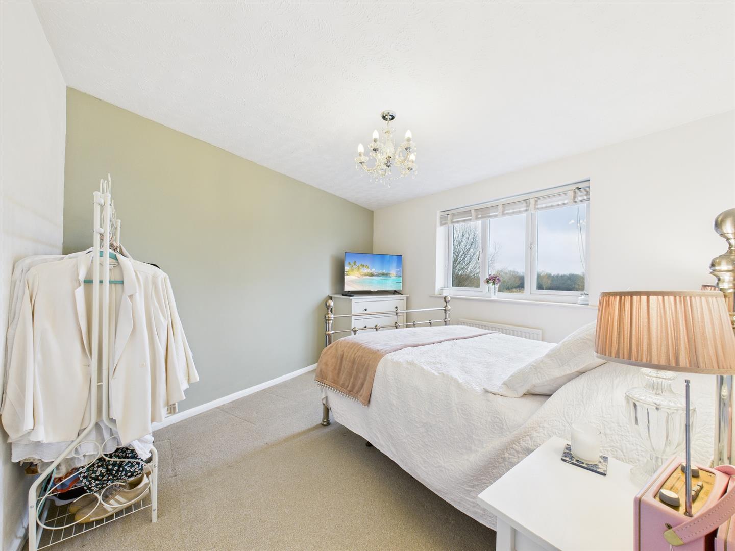 Upstairs, the first-floor landing offers loft access and an airing cupboard. There are three double bedrooms, with the master bedroom having views of the lake, along with a family bathroom.