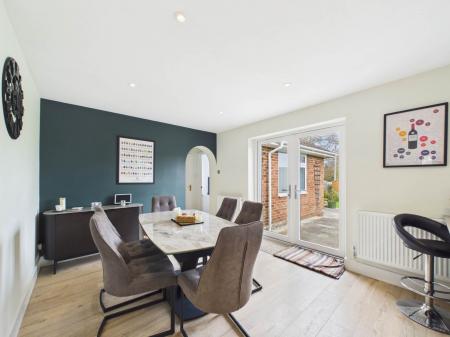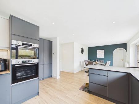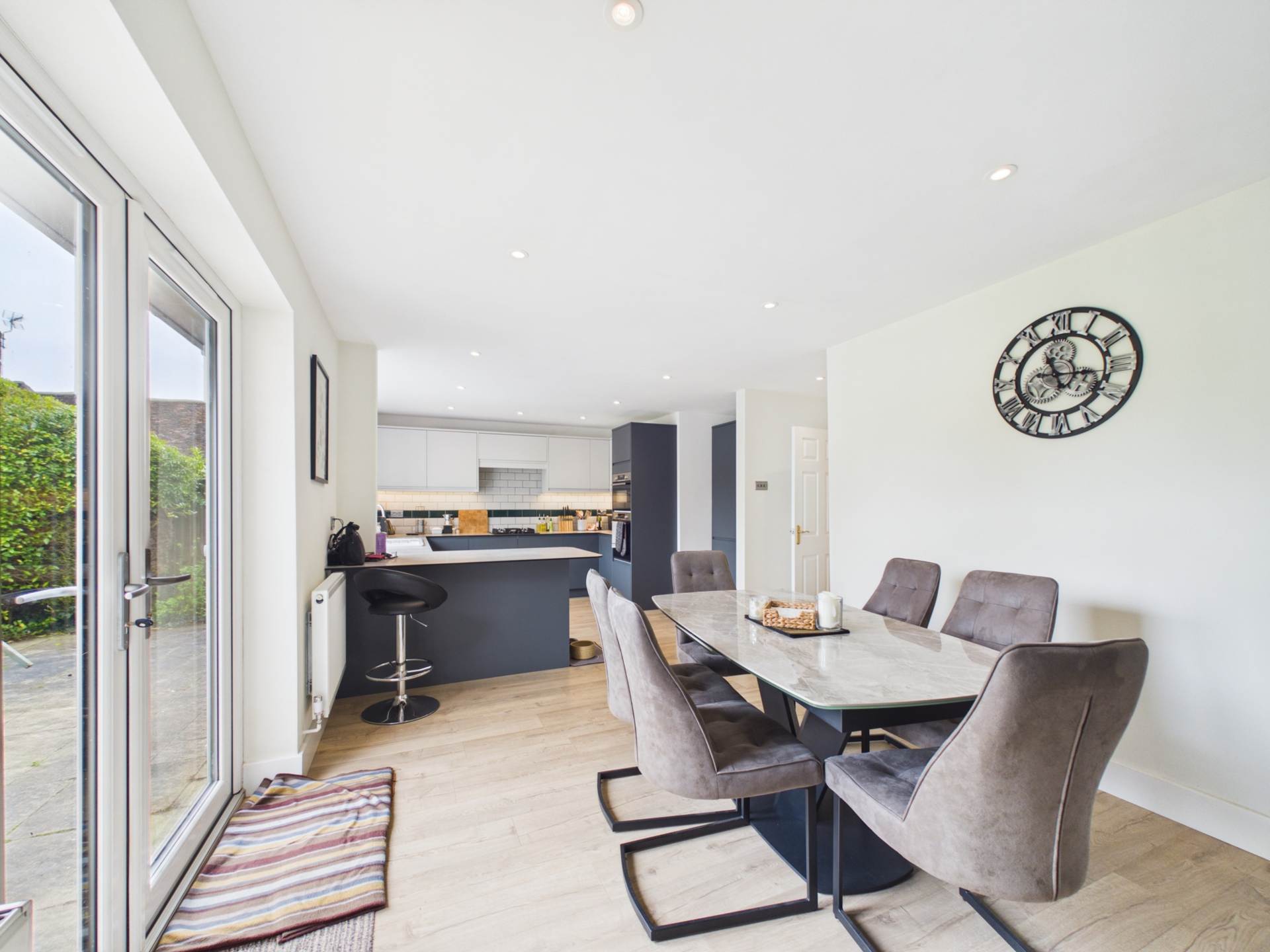 The accommodation is thoughtfully arranged and filled with natural light. An inviting entrance hall leads to a spacious living room with feature fireplace overlooking the mature front garden. To the rear, a stylish open-plan kitchen and dining space has been recently updated with a contemporary fitted kitchen and modern appliances, creating a superb setting for everyday family life and entertaining.