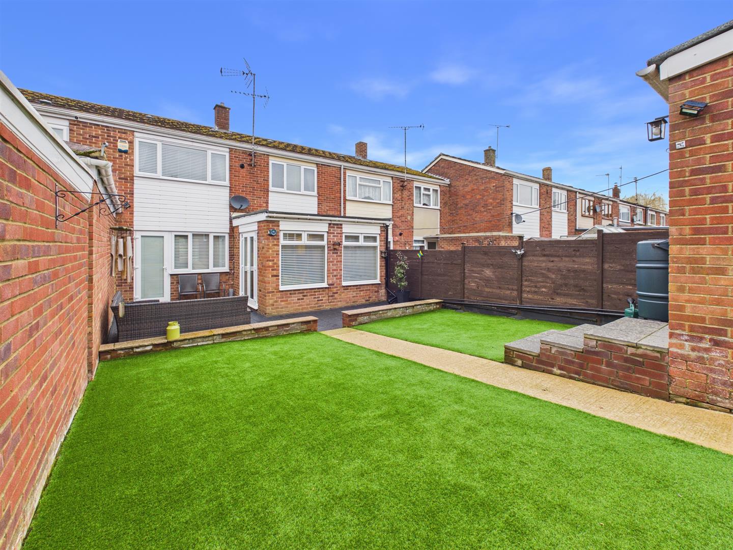 Externally, the enclosed rear garden is designed for low maintenance, featuring a patio area, artificial grass and a garden shed. A door provides direct access to the garage, which is equipped with light and power, and there is also gated rear access.