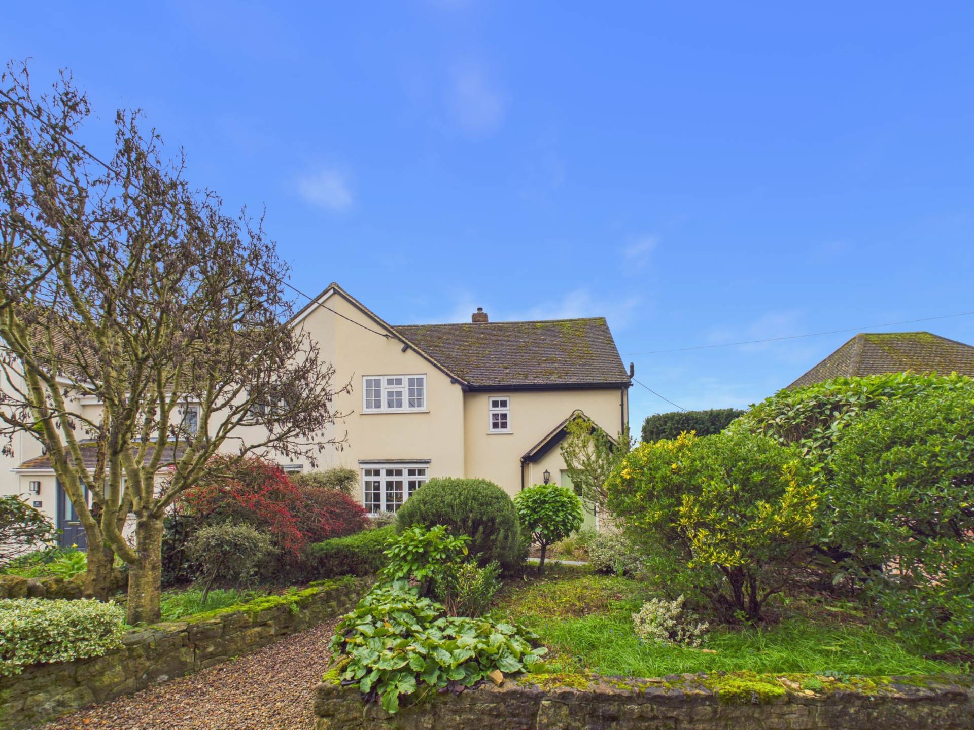 Set back from the road, this charming three-bedroom semi-detached family home enjoys a peaceful position with driveway access to the rear. Surrounded by a beautifully maintained garden and open views across neighbouring fields, this property is offered for sale with no onward chain.