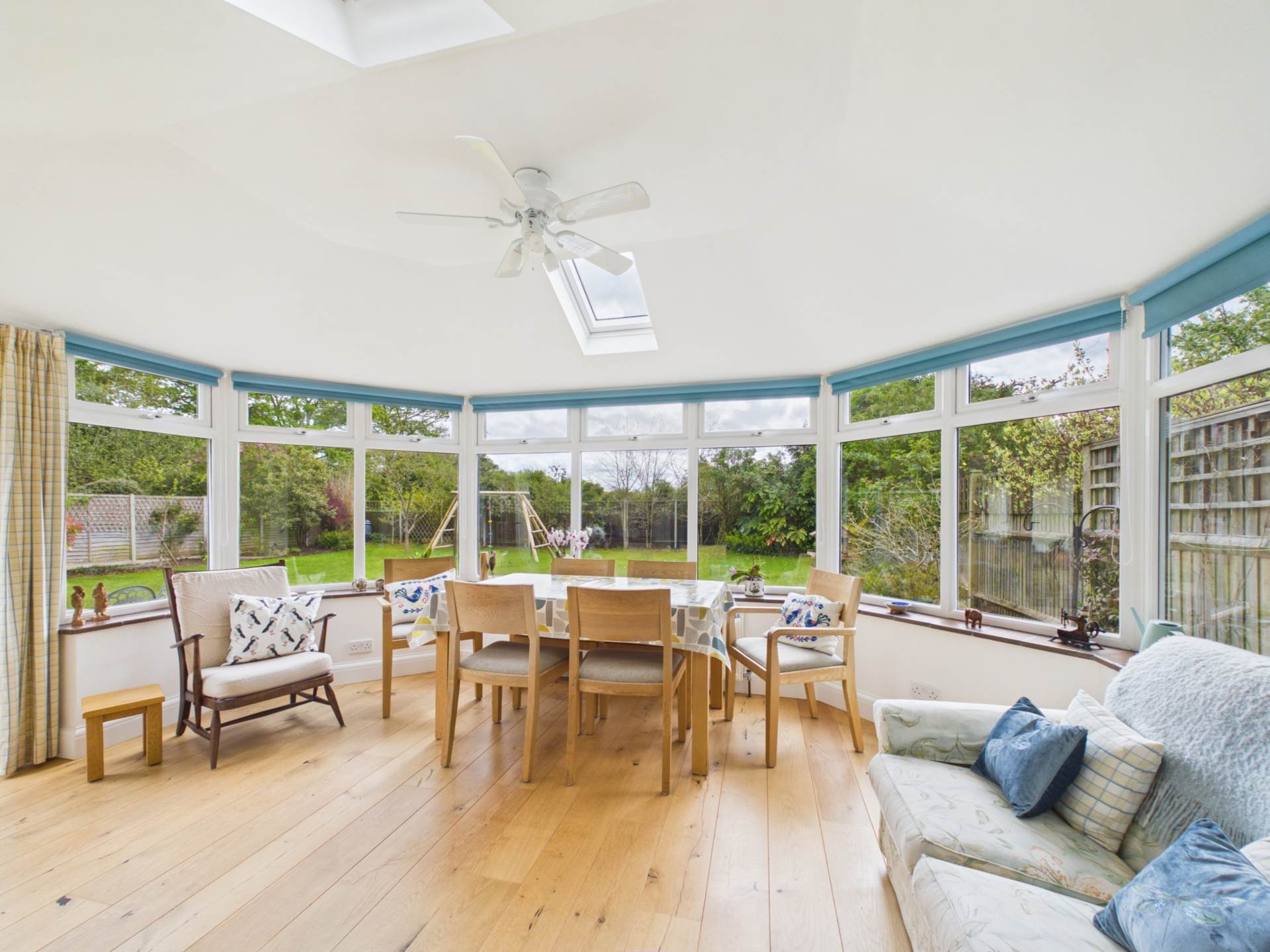 The main reception room is beautifully bright and inviting, flowing effortlessly into a thoughtfully upgraded conservatory. This impressive space benefits from a modern insulated roof system and remote-controlled windows, creating a comfortable and versatile environment that remains warm in the winter months and cool throughout the summer.
