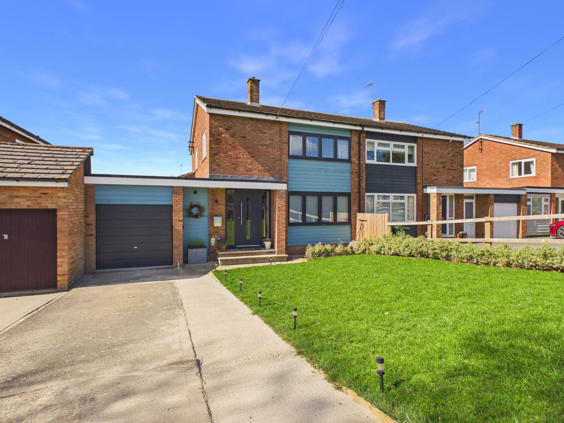 Externally, the rear garden has been recently landscaped, featuring a new patio area and stylish sleeper planters, creating an ideal space for outdoor relaxation. To the front, the property offers ample off-street parking, a newly laid lawn, neat yew and pittosporum hedging, and a garage.