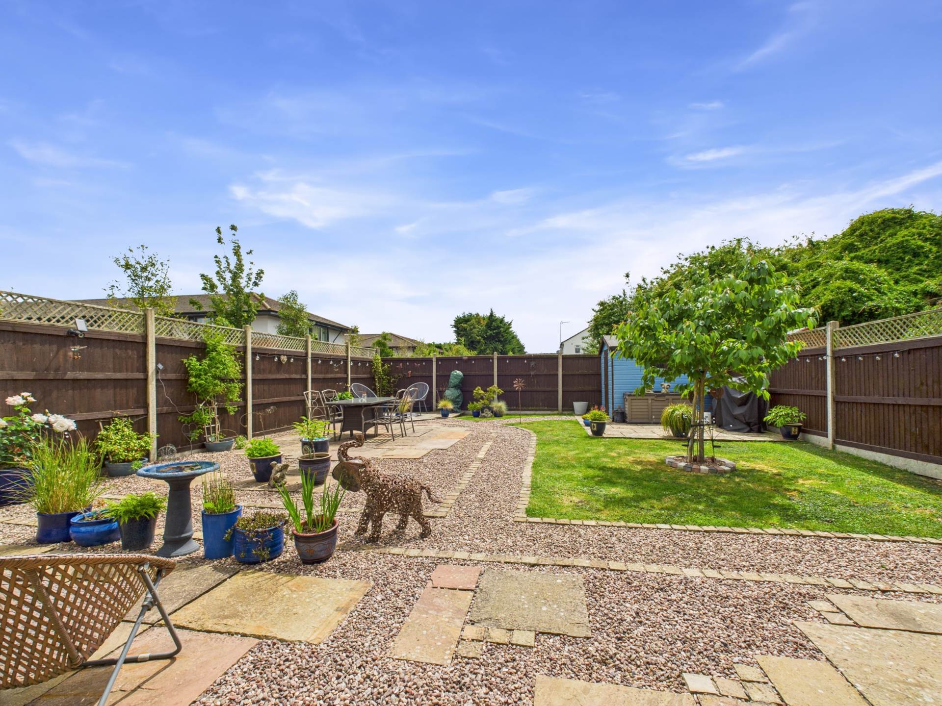 Outside, the home enjoys ample off-street parking for multiple vehicles. A particular highlight is the expansive south-facing garden a sunny haven ideal for