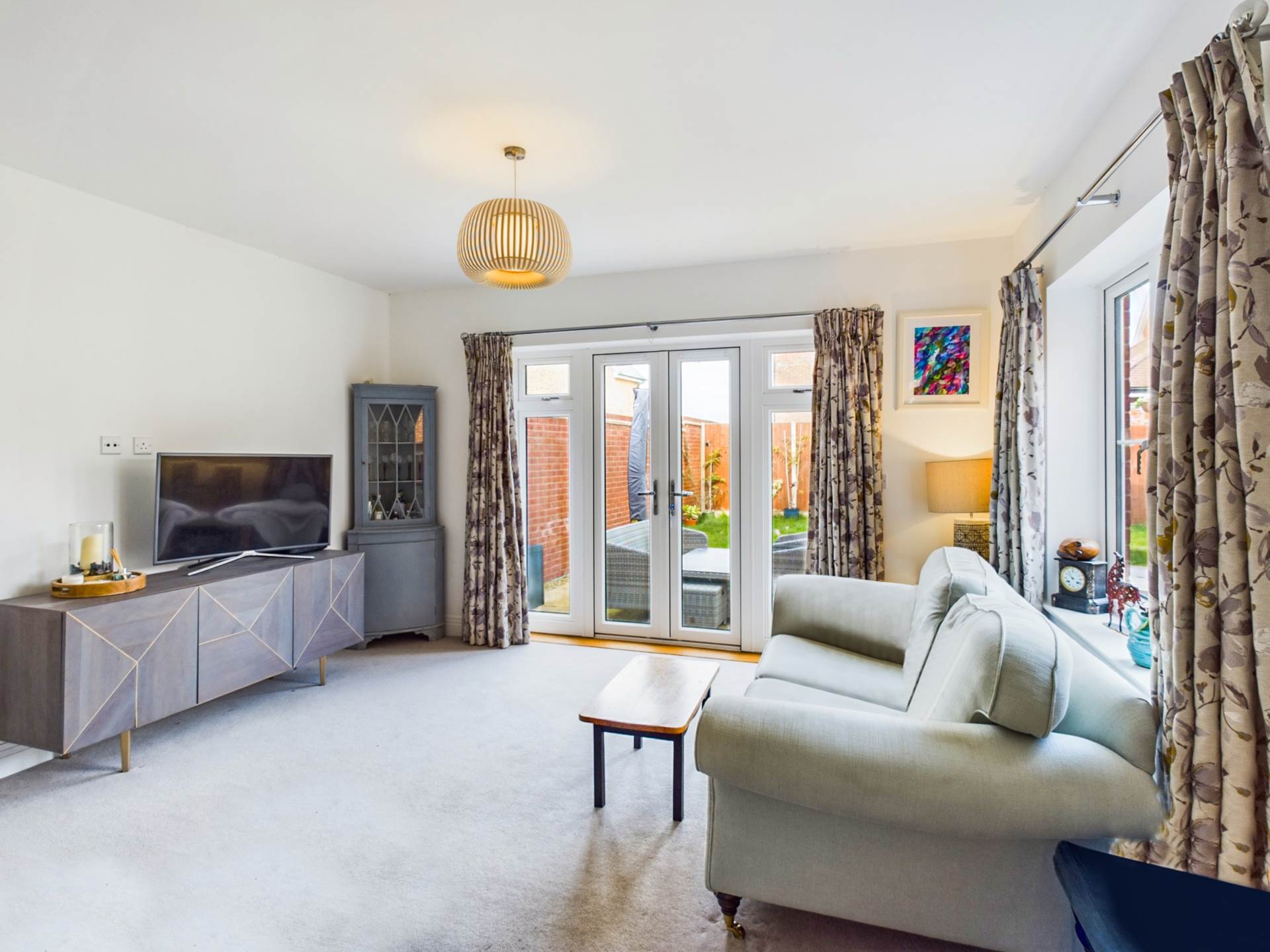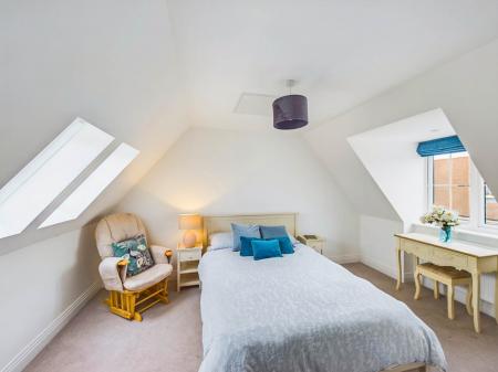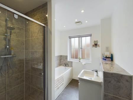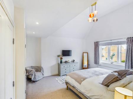 On the first floor, the impressive principal suite features a part-vaulted ceiling, extensive fitted wardrobes, and an ensuite shower room. Two additional double bedrooms and a modern family bathroom provide plenty of space for the family.