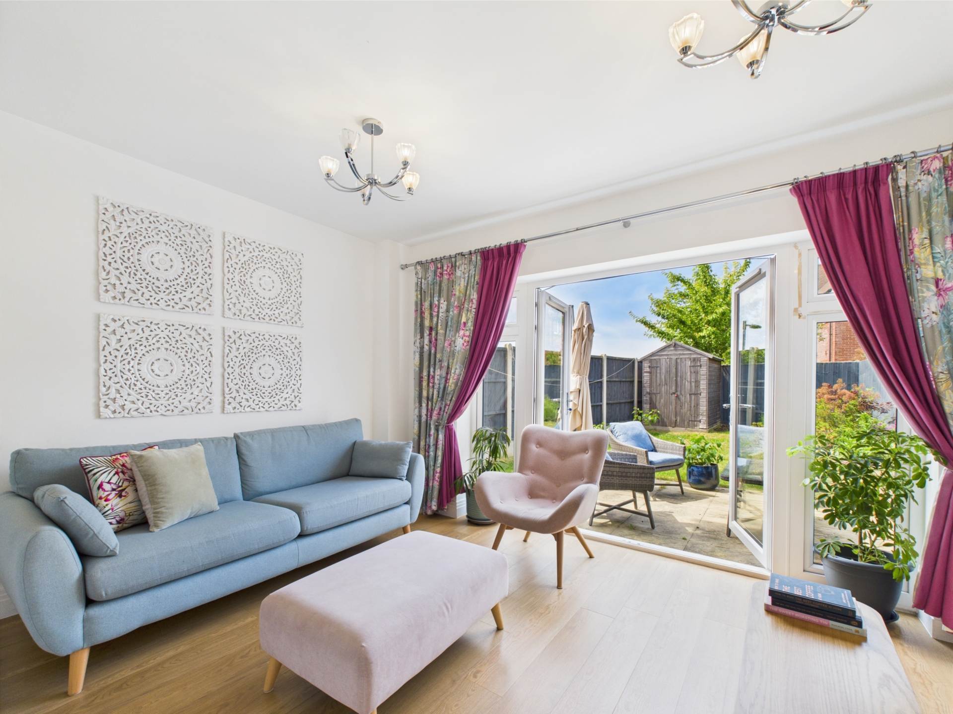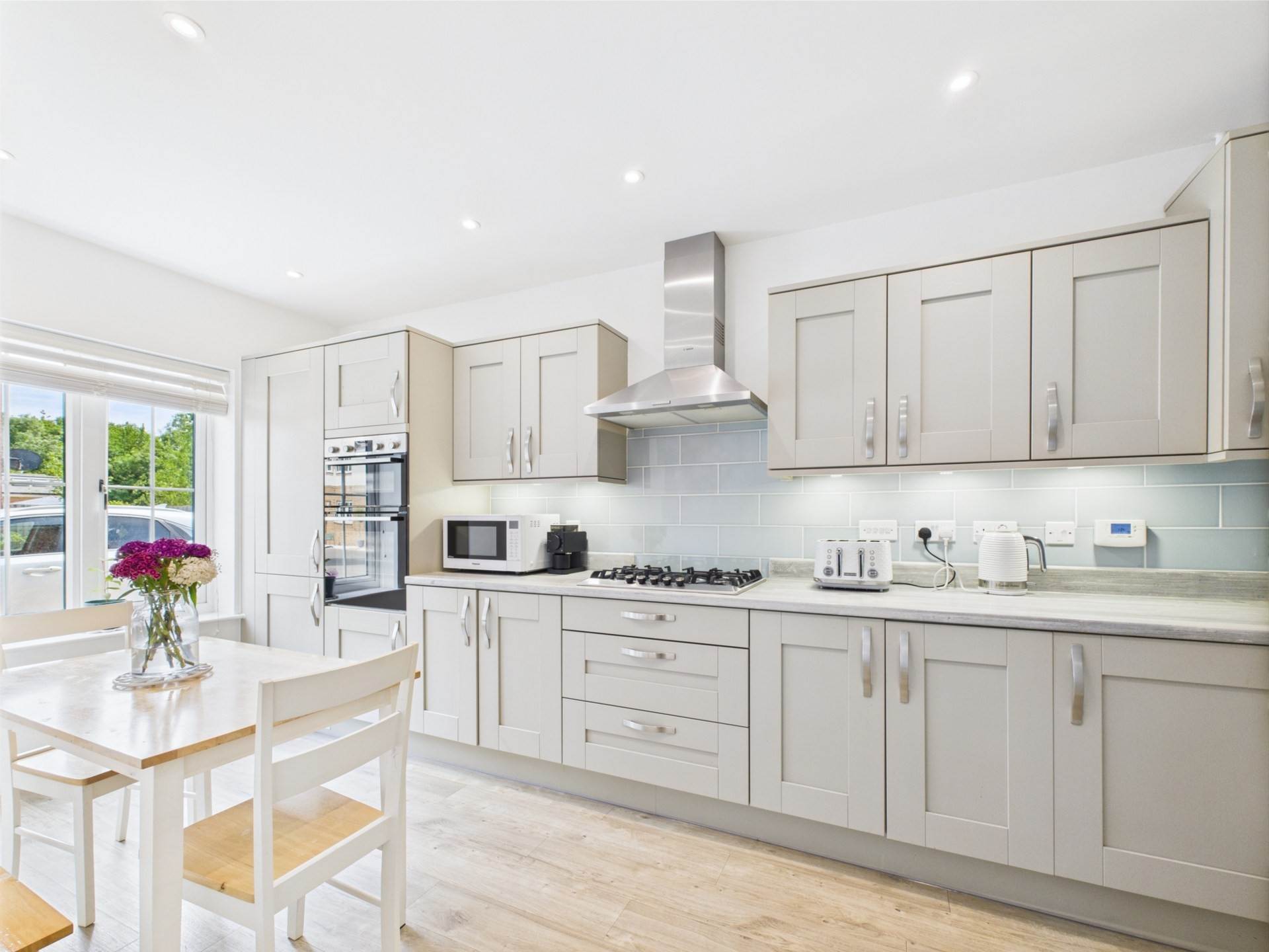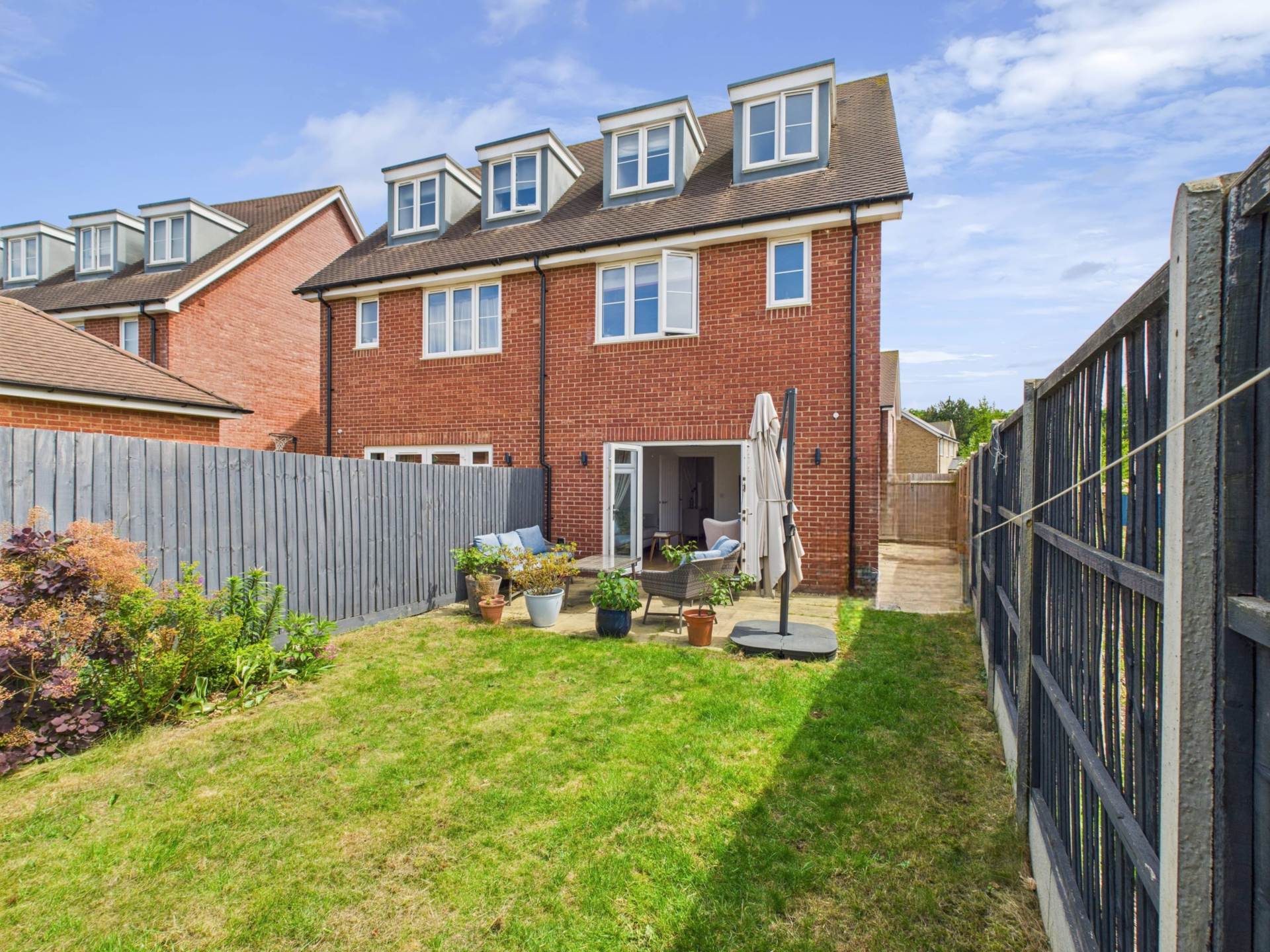 On the ground floor, you`re welcomed by an inviting entrance hall leading to a handy downstairs WC. The contemporary kitchen and dining area is thoughtfully laid out and perfect for hosting family and friends, while the generous reception room features patio doors that open directly onto the rear garden, creating a seamless connection between indoor and outdoor living.