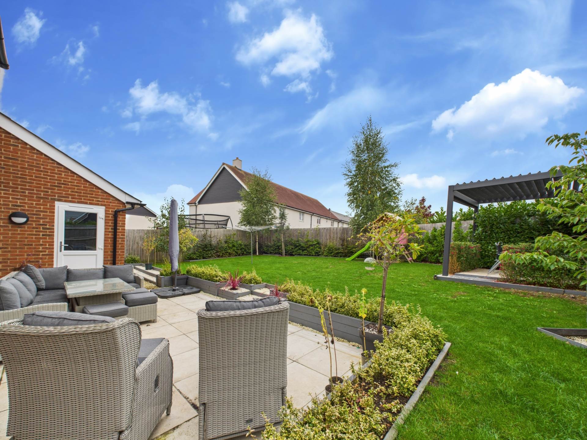 Externally, the rear garden is a real highlight partially tiered and landscaped with a mix of patioed, lawned, and bordered areas, making it ideal for entertaining and enjoying the sun. The garden is a true suntrap, offering a private and tranquil outdoor space.