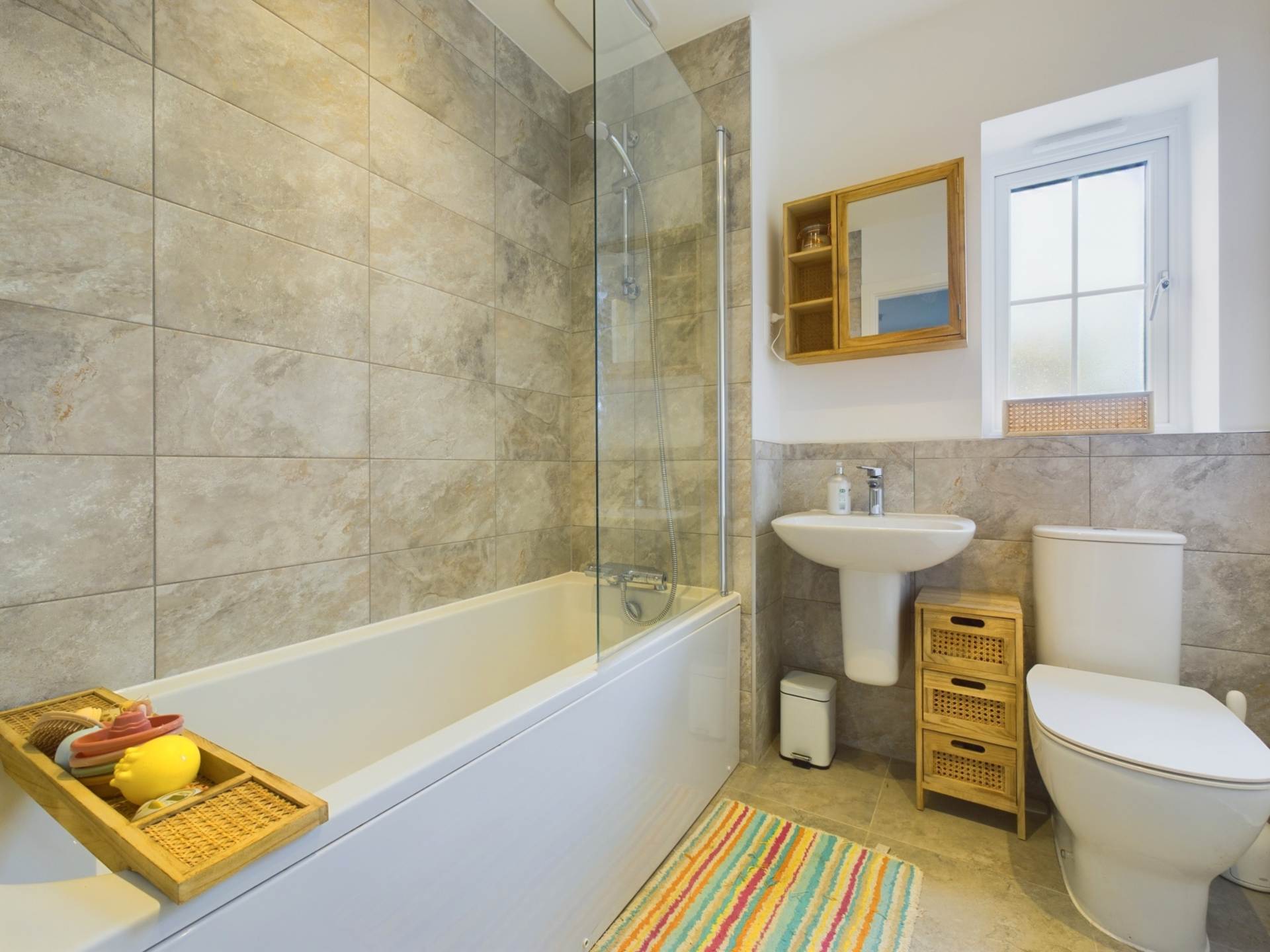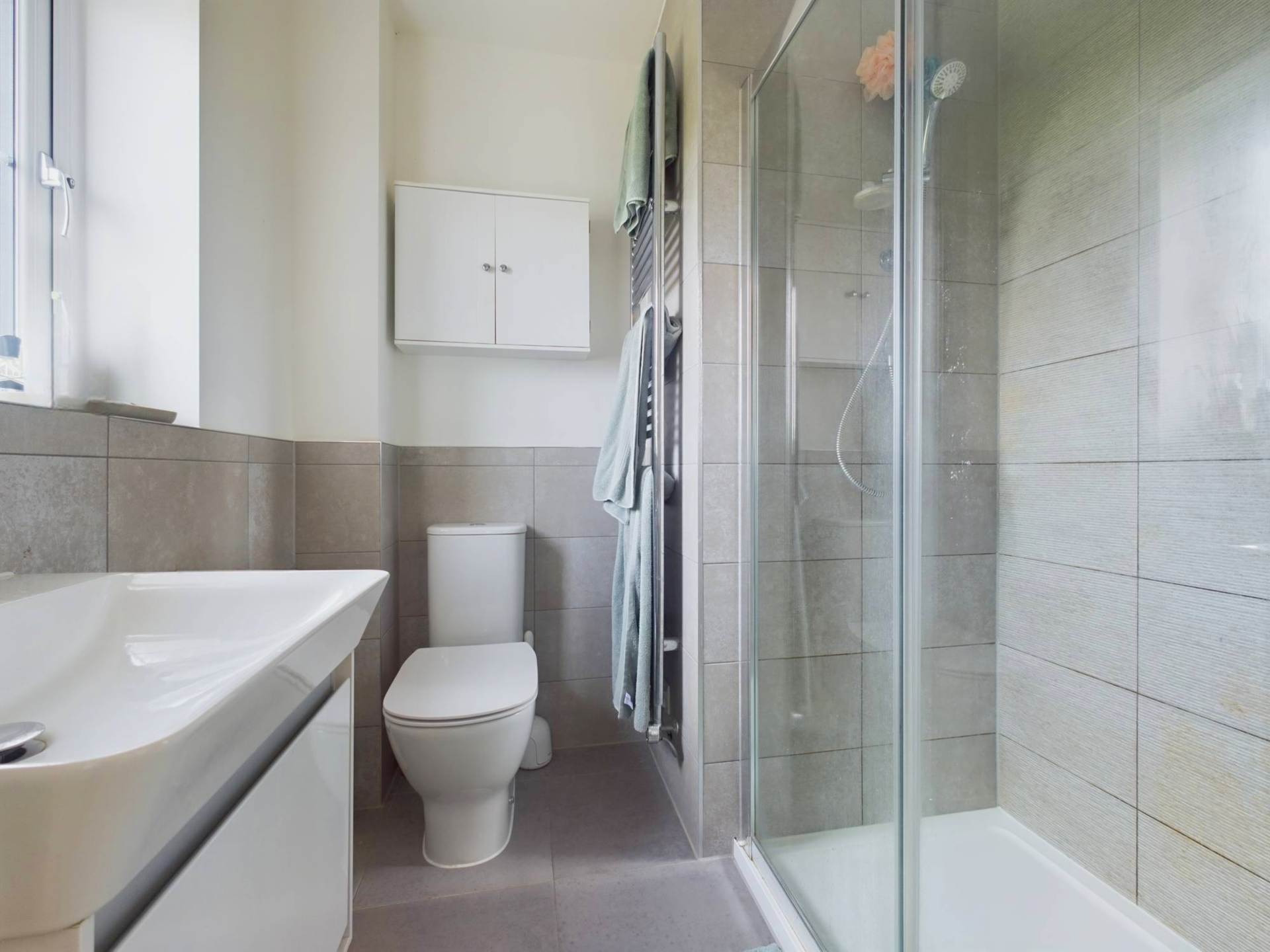 Upstairs, the property boasts three well-proportioned bedrooms, each offering comfort and versatility. The primary bedroom is a standout feature, complete with a stylish en-suite shower room and ample space for storage. The second bedroom is a generous double, perfect for guests or family members, while the third bedroom is bright and airy, making it an ideal child`s room, home office, or creative space. A modern family bathroom serves the additional bedrooms, ensuring convenience for all.Air conditioning has been installed to this floor.