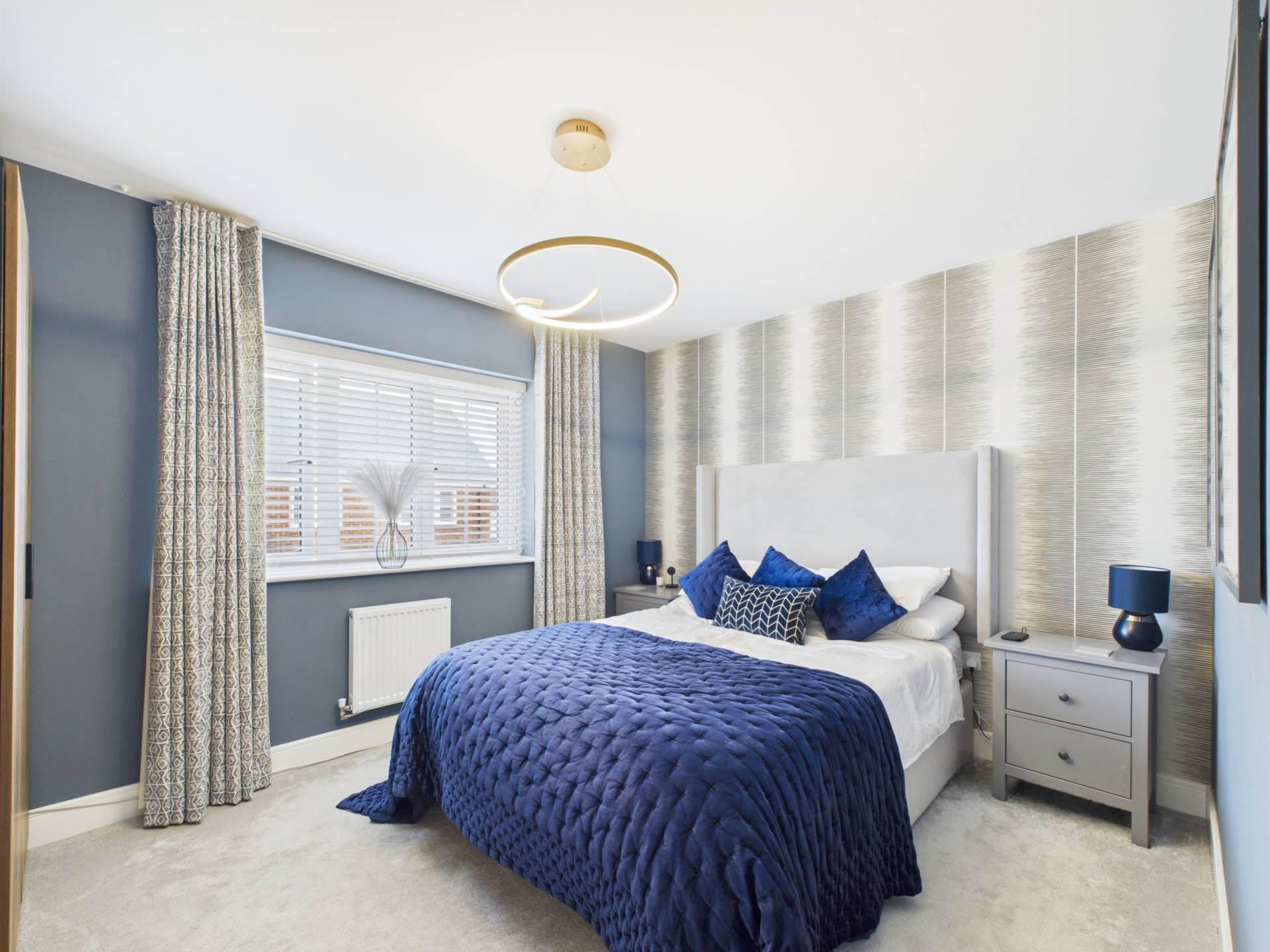Upstairs, the principal bedroom boasts an en suite shower room, while two further bright and generously sized double bedrooms share a modern family bathroom.