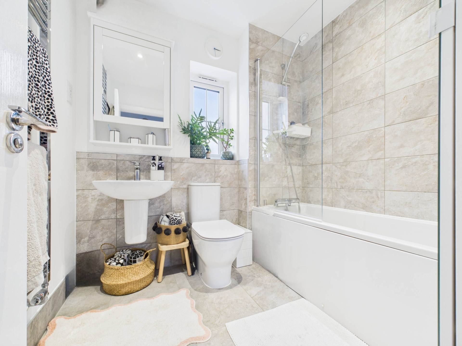This beautiful two-bedroom family home welcomes you with a spacious hallway featuring stylish herringbone-pattern flooring and a convenient downstairs WC.