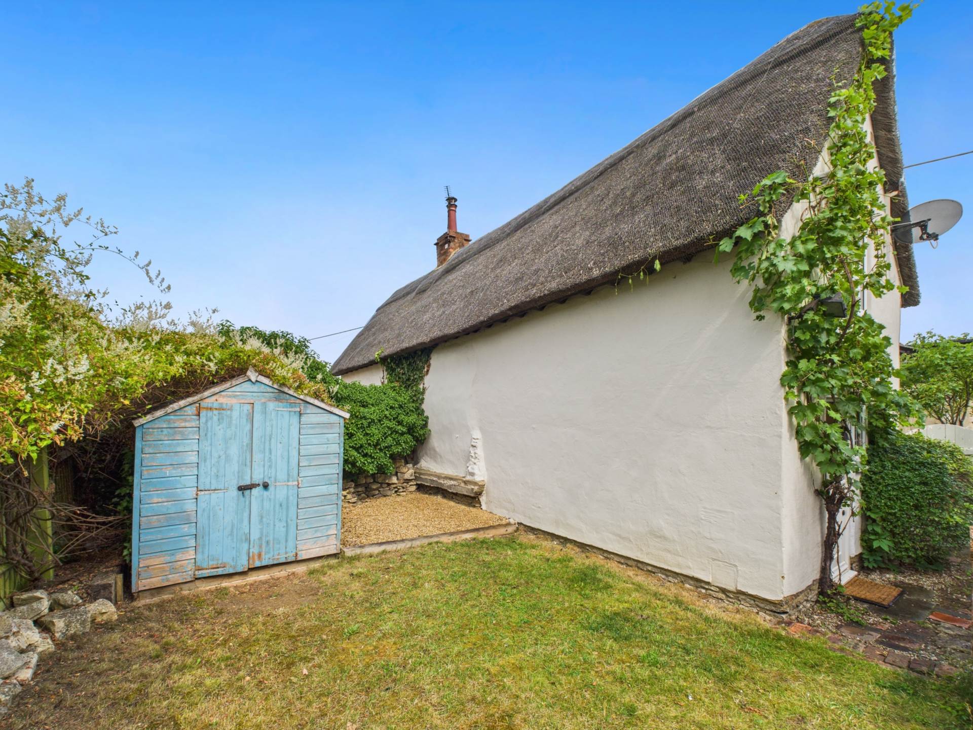 The thatched roof was renewed in 2009 using durable water reed and is expected to remain in good condition for years to come. The property also benefits from gas central heating and a combination of timber-framed Georgian bar windows and UPVC double-glazed units for added energy efficiency. Secondary glazing has been installed to further improve insulation and comfort. In addition, a new back door has been fitted, providing enhanced security and convenient access to the rear garden.