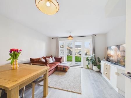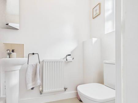 Internally, the property boasts a modern and cohesive finish throughout. The contemporary kitchen is fitted with sleek units and offers space for appliances, combining practicality with stylish design. The spacious sitting room provides a versatile layout with ample room for both comfortable seating and a dining area, while a convenient ground floor cloakroom completes the downstairs accommodation.
