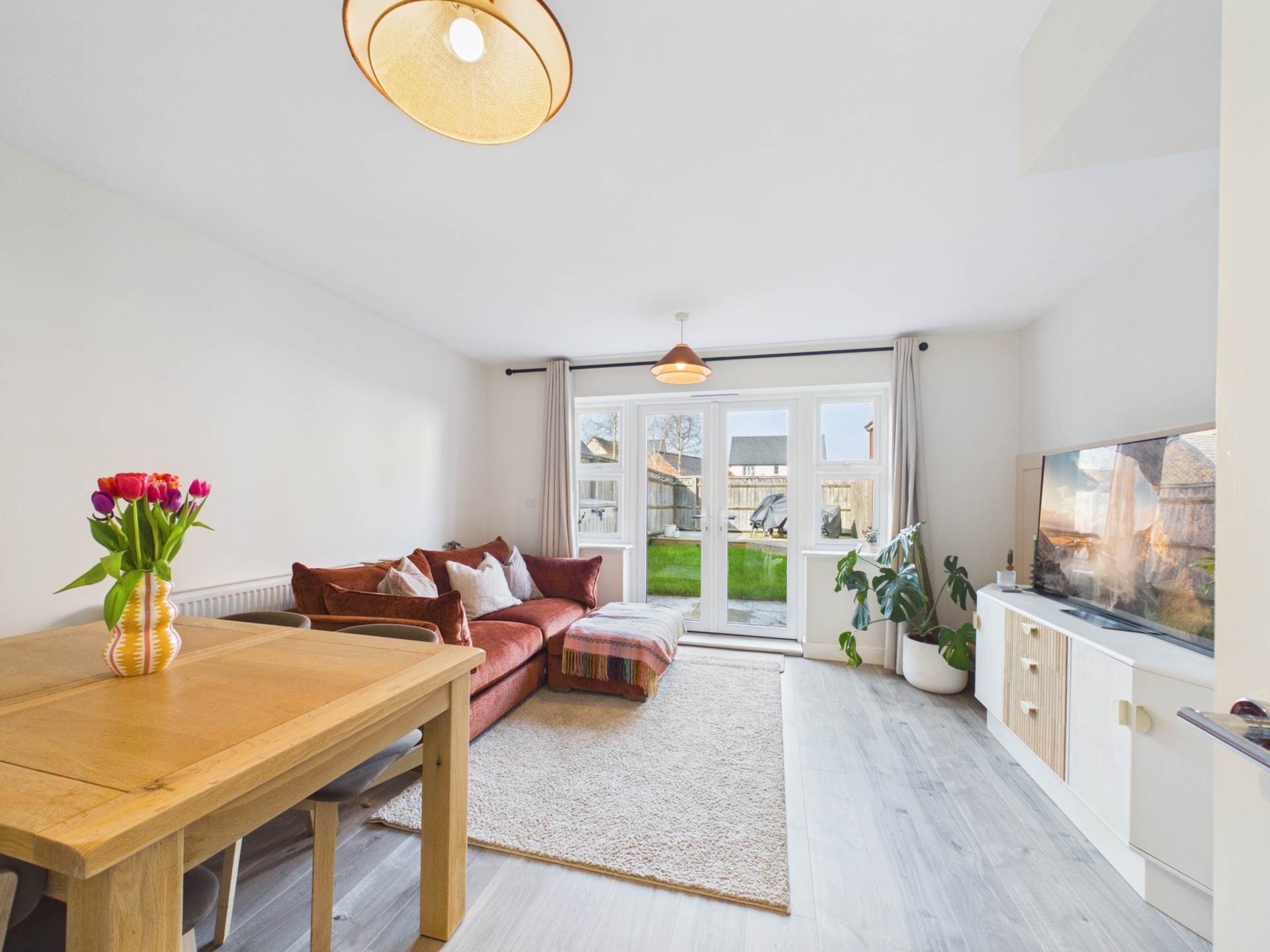 To the front, the home benefits from two allocated parking spaces, providing excellent everyday convenience. The generously sized rear garden is well maintained and features an elegant decking area perfect for outdoor dining, entertaining guests, or simply relaxing in a private setting.