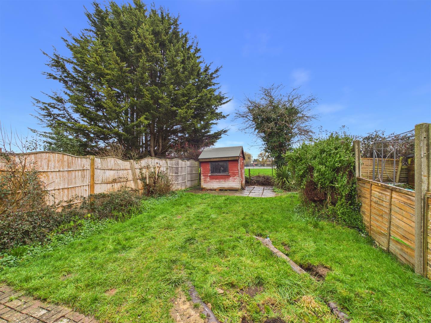 Externally, the rear garden features a patio area leading onto a lawn, with a garden shed for additional storage. To the front, the property offers a driveway, alongside a lawned area.