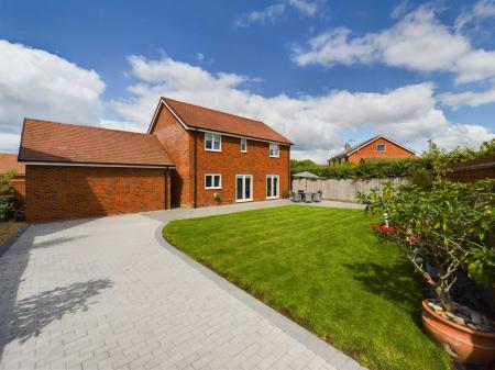 **COMPLETE ONWARD CHAIN** A recently constructed and very spacious four bedroom detached family home, offered to the market in above show home condition, with a good size rear garden and detached double garage. The accommodation comprises of welcoming and spacious entrance hall, good size sitting room (18`3`` x 14`), lovely and bright open plan kitchen / dining / family area to the rear with Amtico flooring throughout. The kitchen features Quartz worktops and built in AEG oven, hob and dishwasher. There is a separate utility room with AEG washing machine. Ideally for home workers there is a nice size study. The first floor enjoys master bedroom with a range of fitted wardrobes and en-suite shower room, guest bedroom with further en-suite, third and fourth double bedrooms and well appointed family bathroom. Outside there is a generous rear garden, with a good sized patio area, lawn and planted beds. To the front there is a driveway for comfortably two vehicles and a detached double garage with power, light, Electric Car charging point and electric garage doors. The property, which is situated on a very quiet and peaceful no-through private road, also benefits from local amenities such as the local park as well as a number of pleasant local walks.