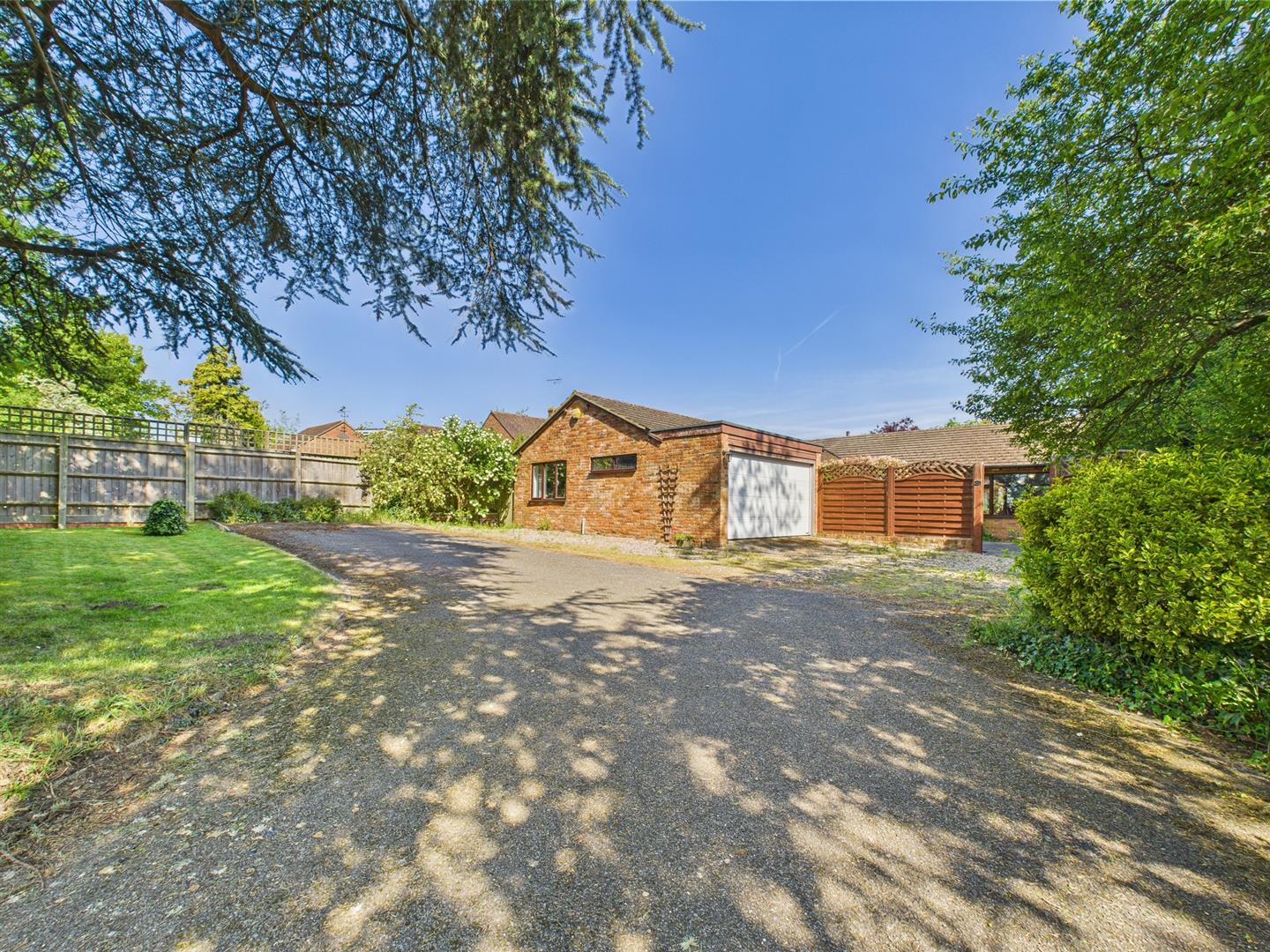 Externally, the bungalow boasts an attractive rear garden with a large patio area, lawn, and well-established trees and shrubs, creating a peaceful and private outdoor space. The front garden is equally generous, featuring a combination of lawn, gravelled and patio areas, along with a large driveway offering off-street parking for multiple vehicles and access to a garage.