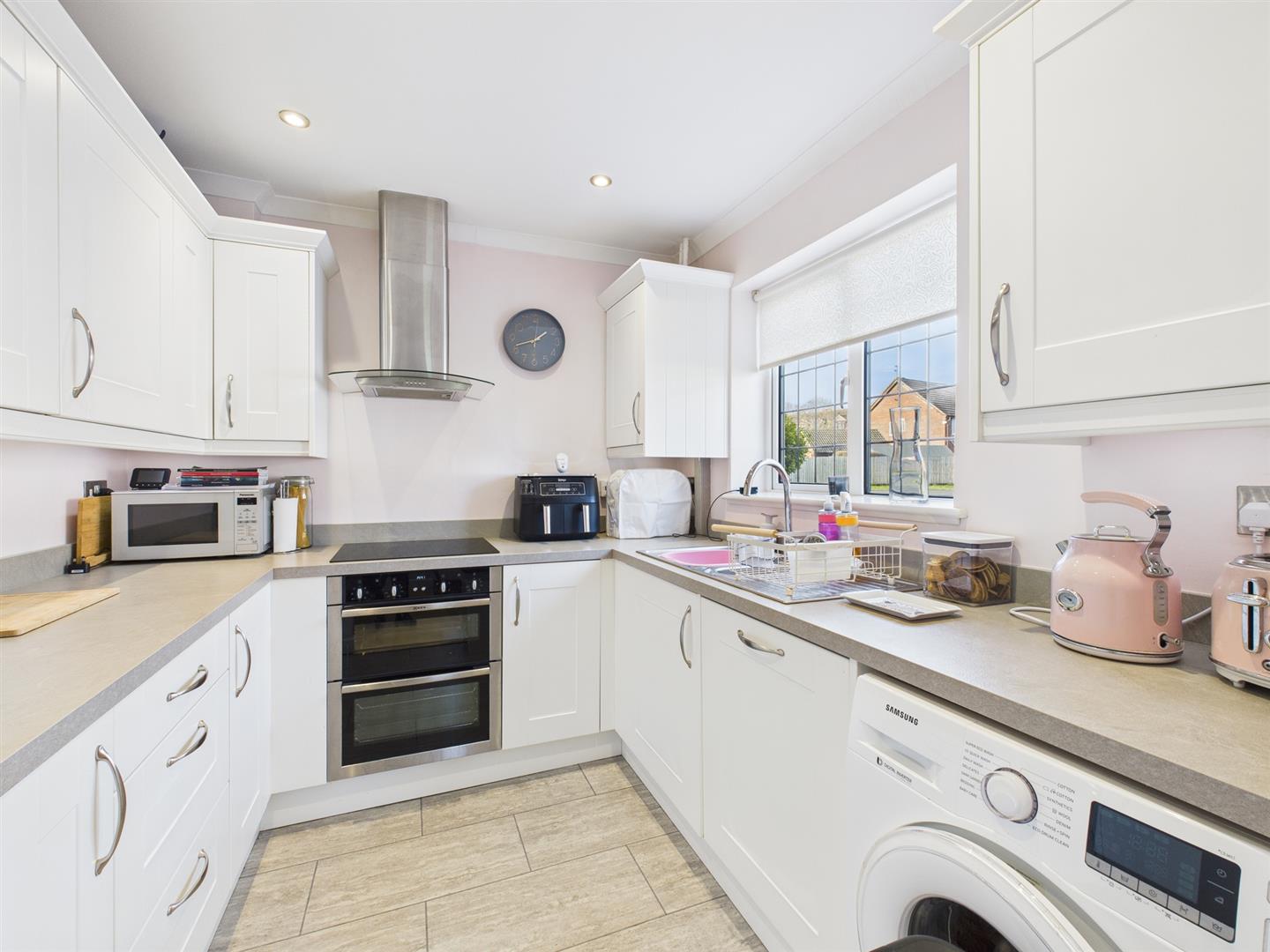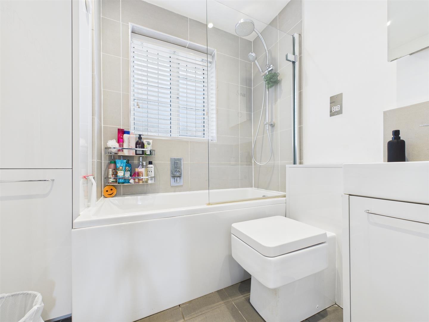 Accommodation - The accommodation begins with an entrance hall featuring stairs rising to the first floor. The modern kitchen is well appointed with an inset electric hob, oven, and extractor fan, along with integrated appliances including a dishwasher and fridge, plus space for a washing machine. To the rear of the property is a spacious living room, benefiting from a useful storage cupboard and double doors that open directly onto the garden, creating a light and welcoming living space.