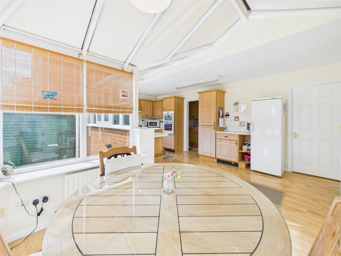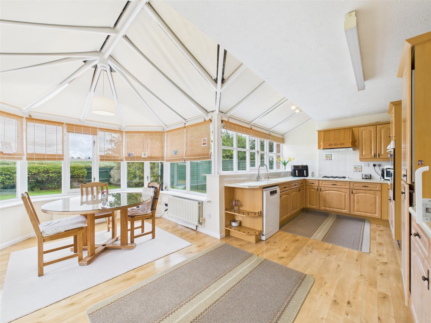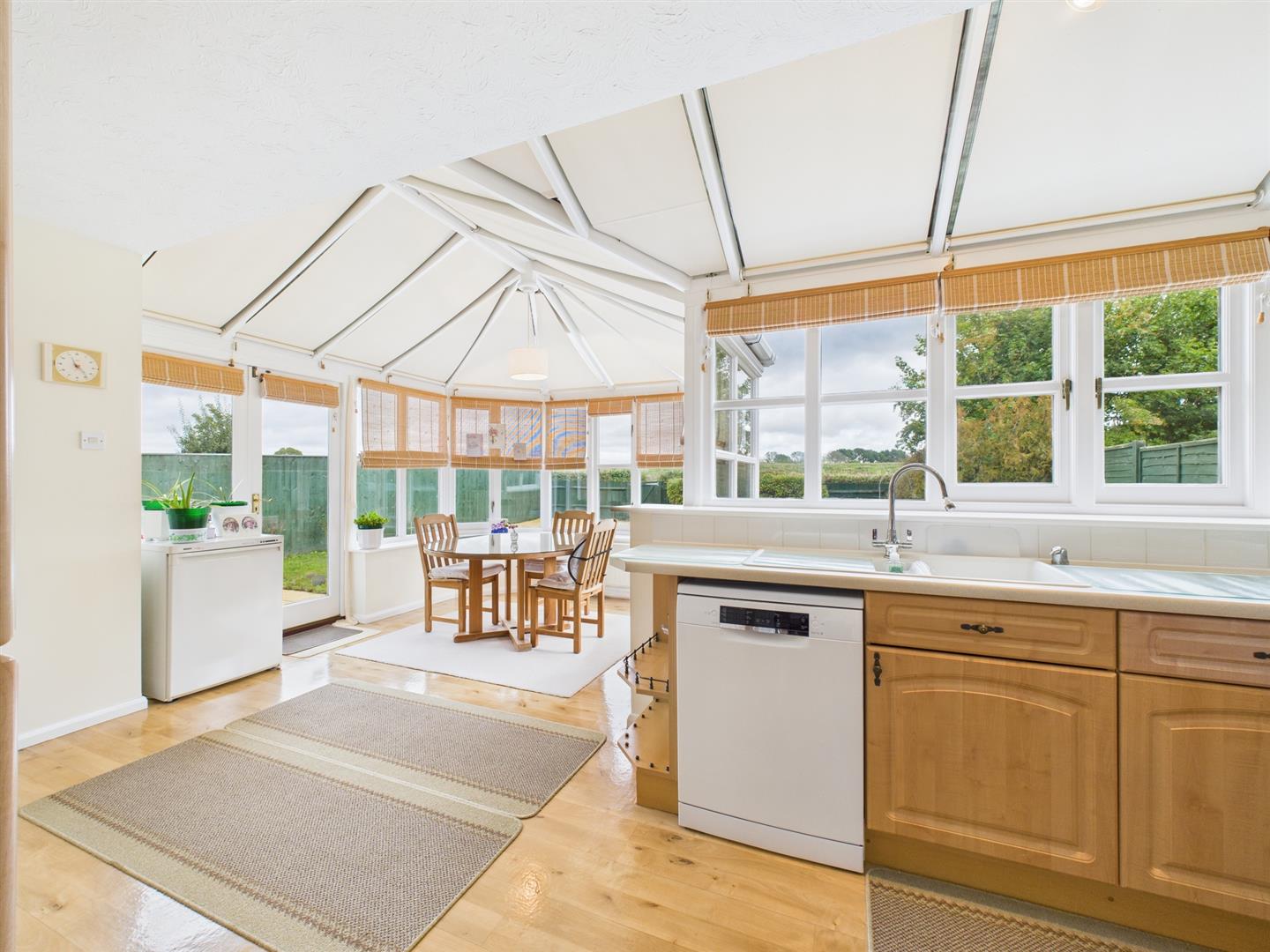 The well-appointed kitchen/diner is fitted with an inset gas hob, oven and grill, with space for a fridge and dishwasher. The dining area enjoys attractive views over the garden, creating a perfect setting for family meals. A separate utility room offers additional storage and space for both a washing machine and tumble dryer.