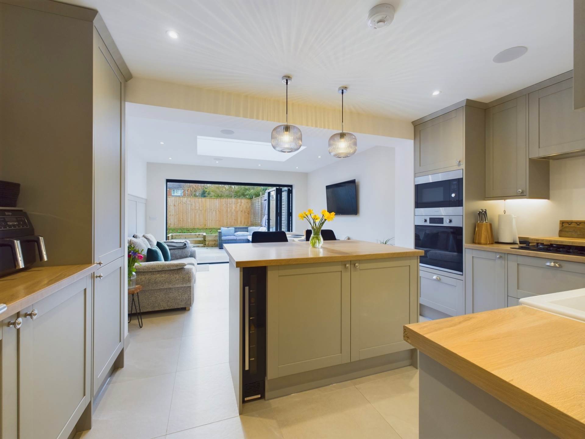 Stunningly presented two double bedroom semi detached house, just a five minute walk from Wendover train station, situated at the bottom of a quiet no through road. The property has been tastefully extended and refurbished by the current owners in the last 18 months. The accommodation comprises of a superb open plan kitchen / family area with large lantern letting in lots of light. There is under floor heating throughout this area, as well as the entire downstairs. The kitchen enjoys integrated oven, hob, fridge, freezer, dishwasher and washing machine. There is an island unit too. The downstairs also has a good size living room to the front as well as downstairs WC. The first floor has a large double bedroom to the front, second double bedroom to the rear and a well appointed family bathroom. Outside the private rear garden has been well landscaped and has an excellent size seating area with steps leading up to a raised lawn area. There is good side access leading to the driveway, where there is parking for comfortably two vehicles. An appointment to view is essential to fully appreciate this lovely home.