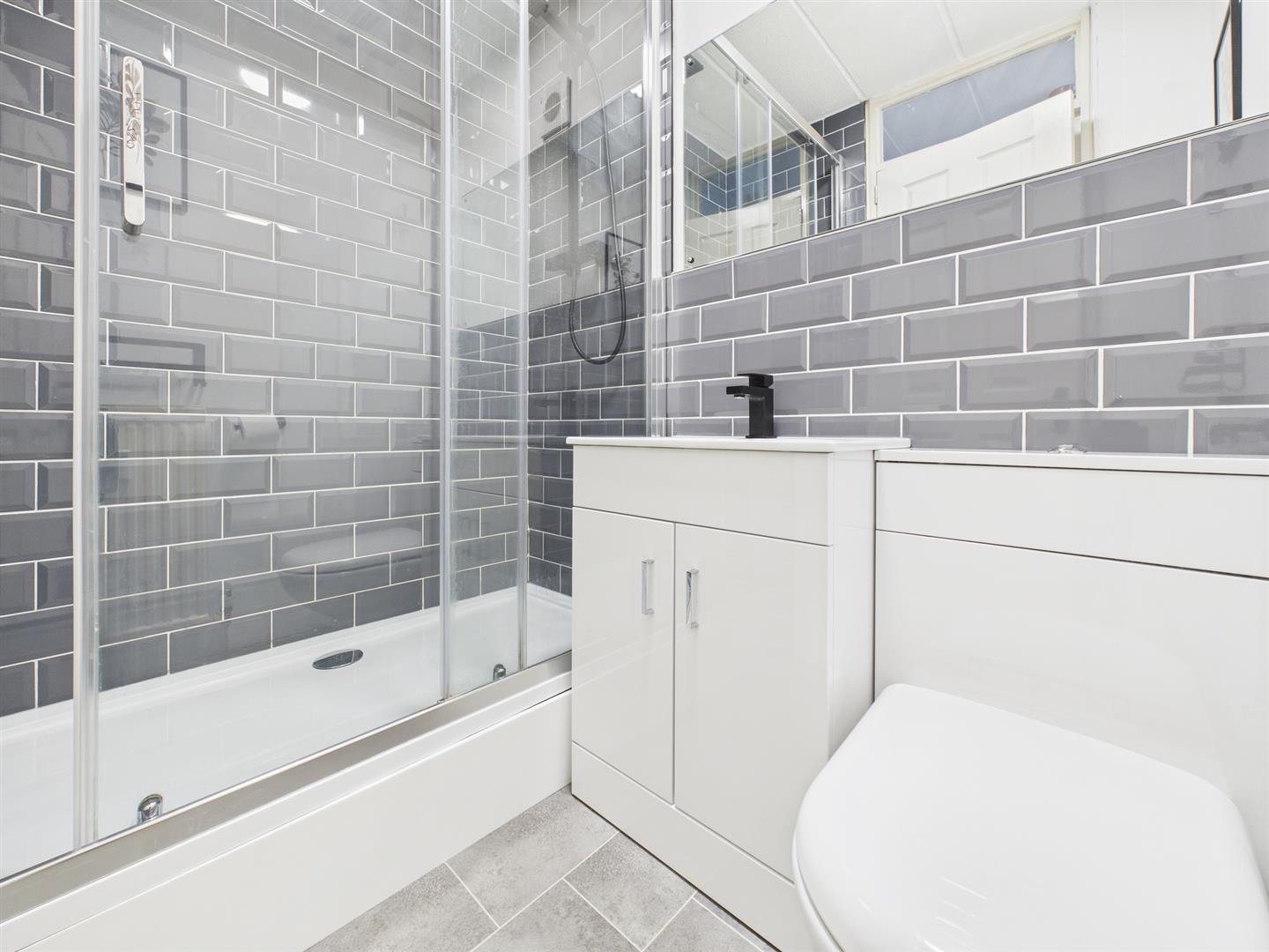 The bedroom benefits from a fitted wardrobe, offering practical storage solutions, and the bathroom includes a shower cubicle, WC and wash basin with storage.
