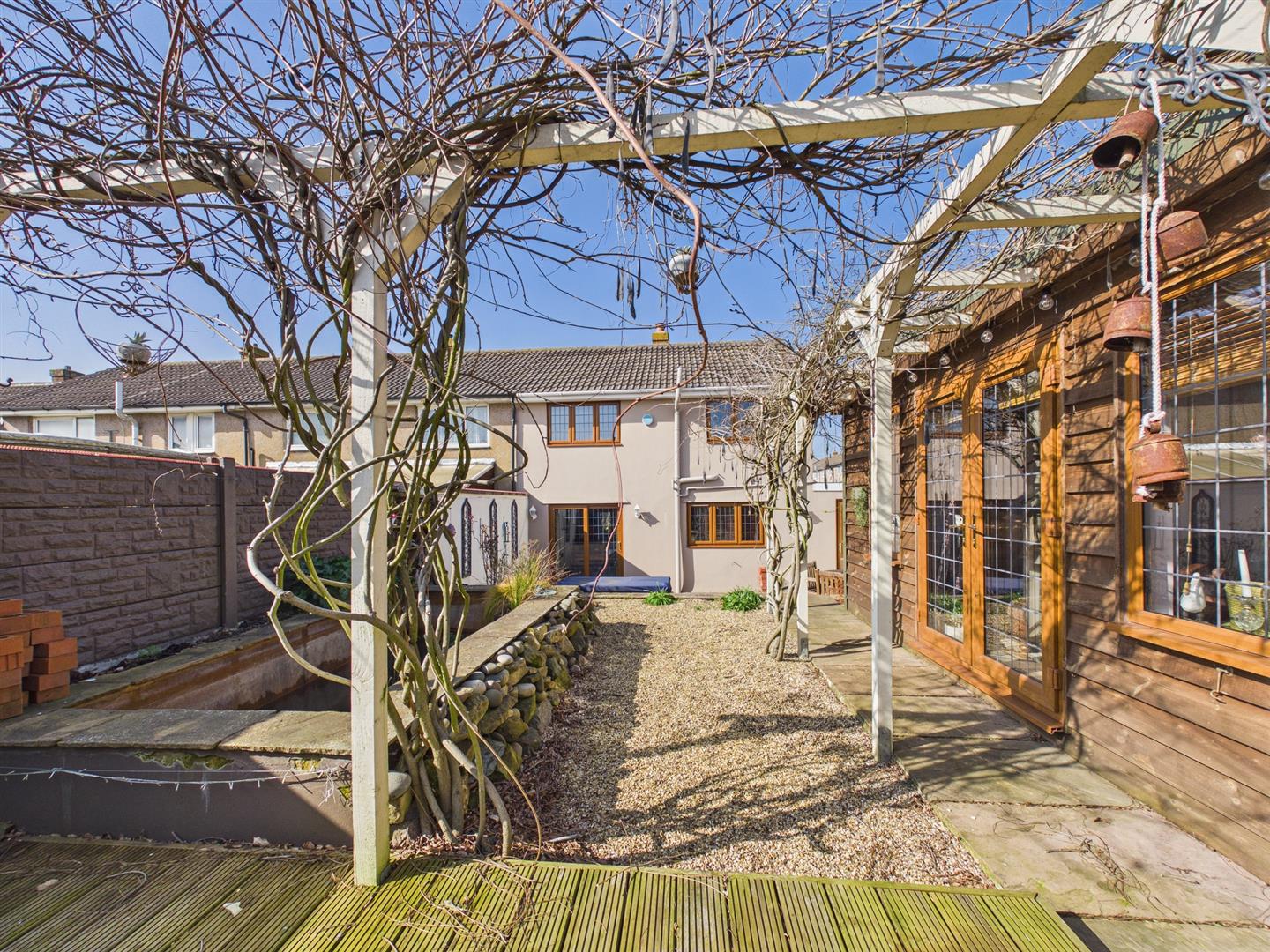 Spacious three bedroom end-of-terrace home in a popular residential location close to schools and local amenities. Offered with no upper chain, the property features a living room, kitchen, and utility room, along with three well-proportioned bedrooms and a family bathroom. Outside, there is a private garden with a large garden room, while the front offers a gated driveway providing off-street parking and two useful outhouses for additional storage.