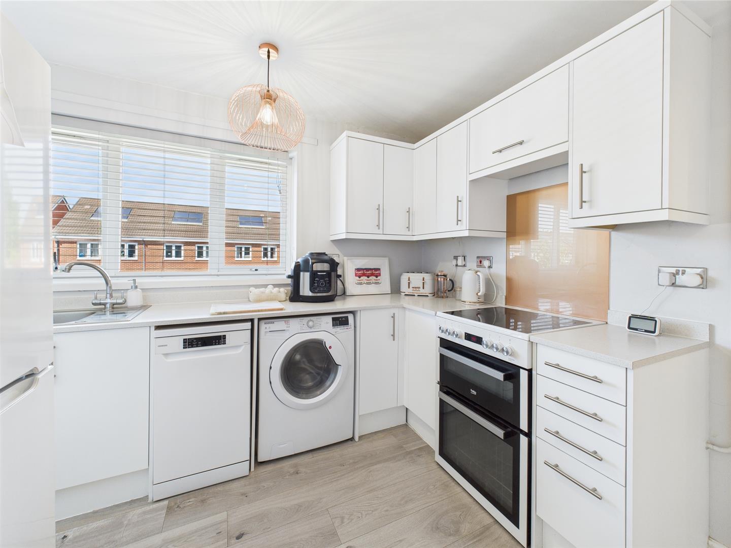 The property welcomes you with a bright and airy atmosphere, featuring a stylish kitchen fitted with contemporary units and ample space for appliances. The spacious living room is flooded with natural light and boasts a feature fireplace, adding character to the space.