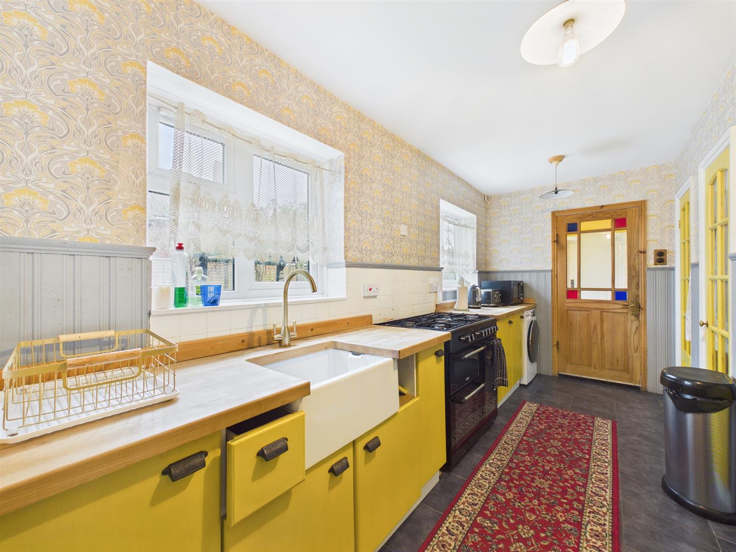 The kitchen is fitted with a range of wall and base units, providing ample worktop space, with room for essential appliances including a washing machine and cooker. Leading from the kitchen is a practical utility room, offering additional space for appliances such as a fridge and further white goods. A convenient downstairs cloakroom completes the ground floor accommodation.