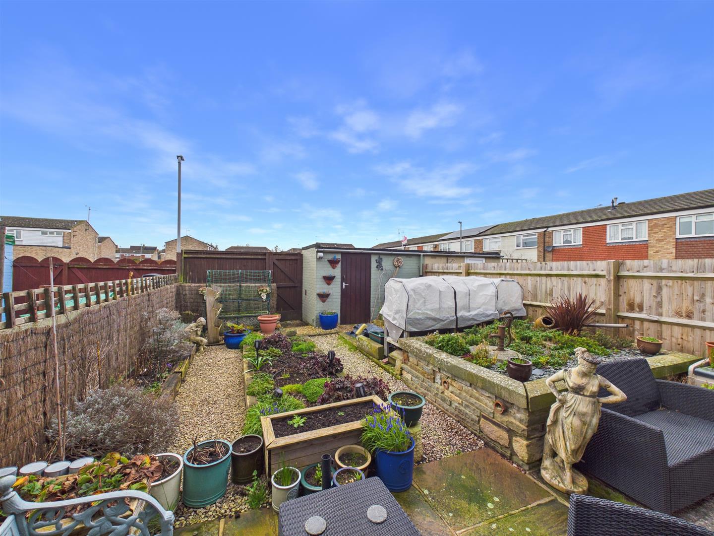 Externally, the enclosed rear garden features a patio area, gravelled sections for low-maintenance upkeep, built-in planters, and a brick-built shed with lighting and power. There is also gated rear access.