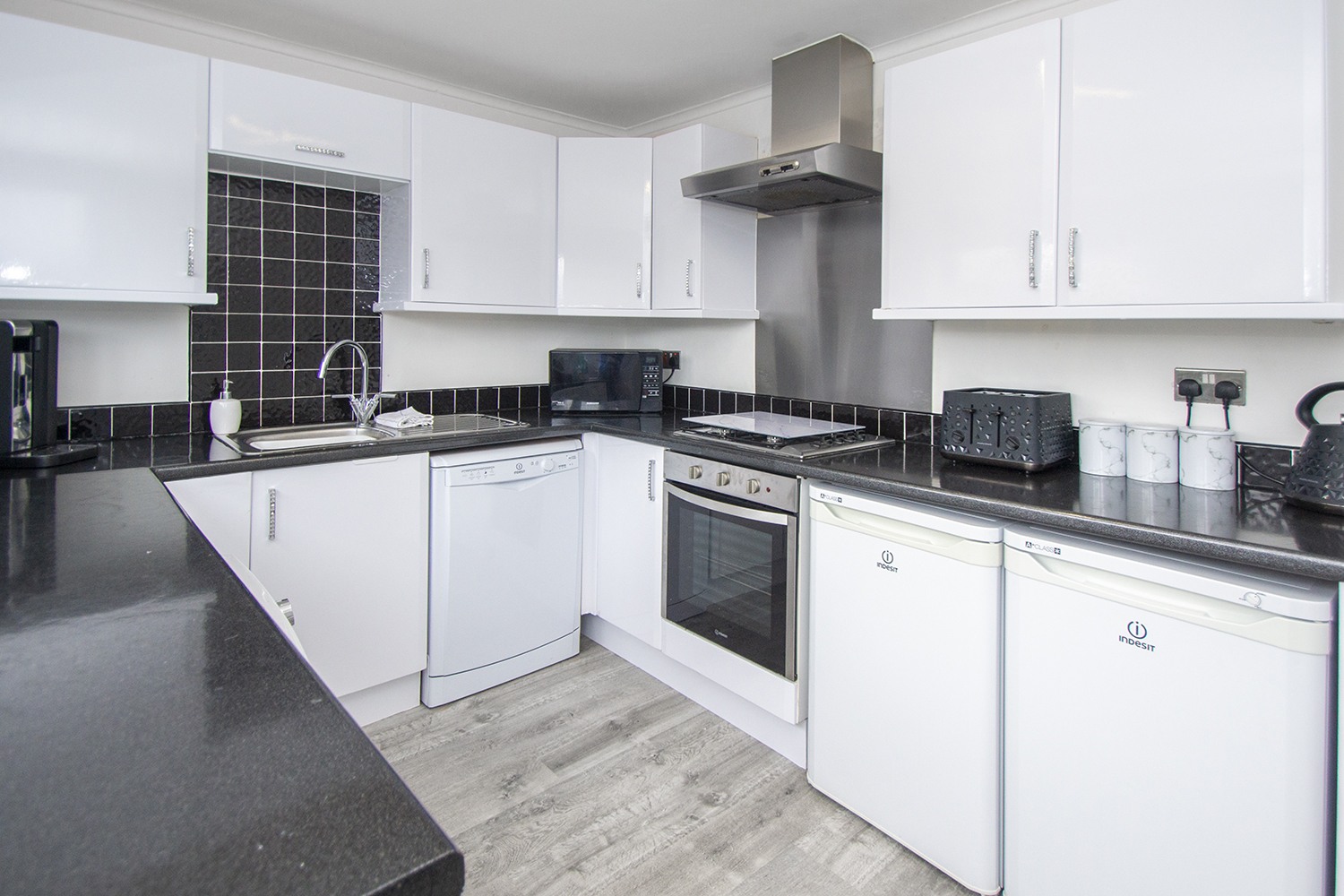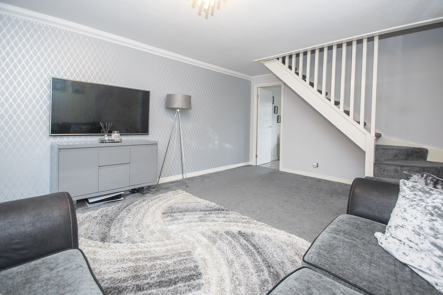 The property comprises of entrance vestibule giving access to front facing bright spacious lounge with open plan staircase leading to upper accommodation, door leading to the modern fitted kitchen with ample range of wall and base units and complementary worktops, integrated hob and oven, plumbing for washing machine and dish washer. The upper level comprises of two good sized bedrooms with the rear having a handy cupboard for storage, three piece family bathroom comprising of w.c, wash hand basin and L shaped bath with overhead shower.