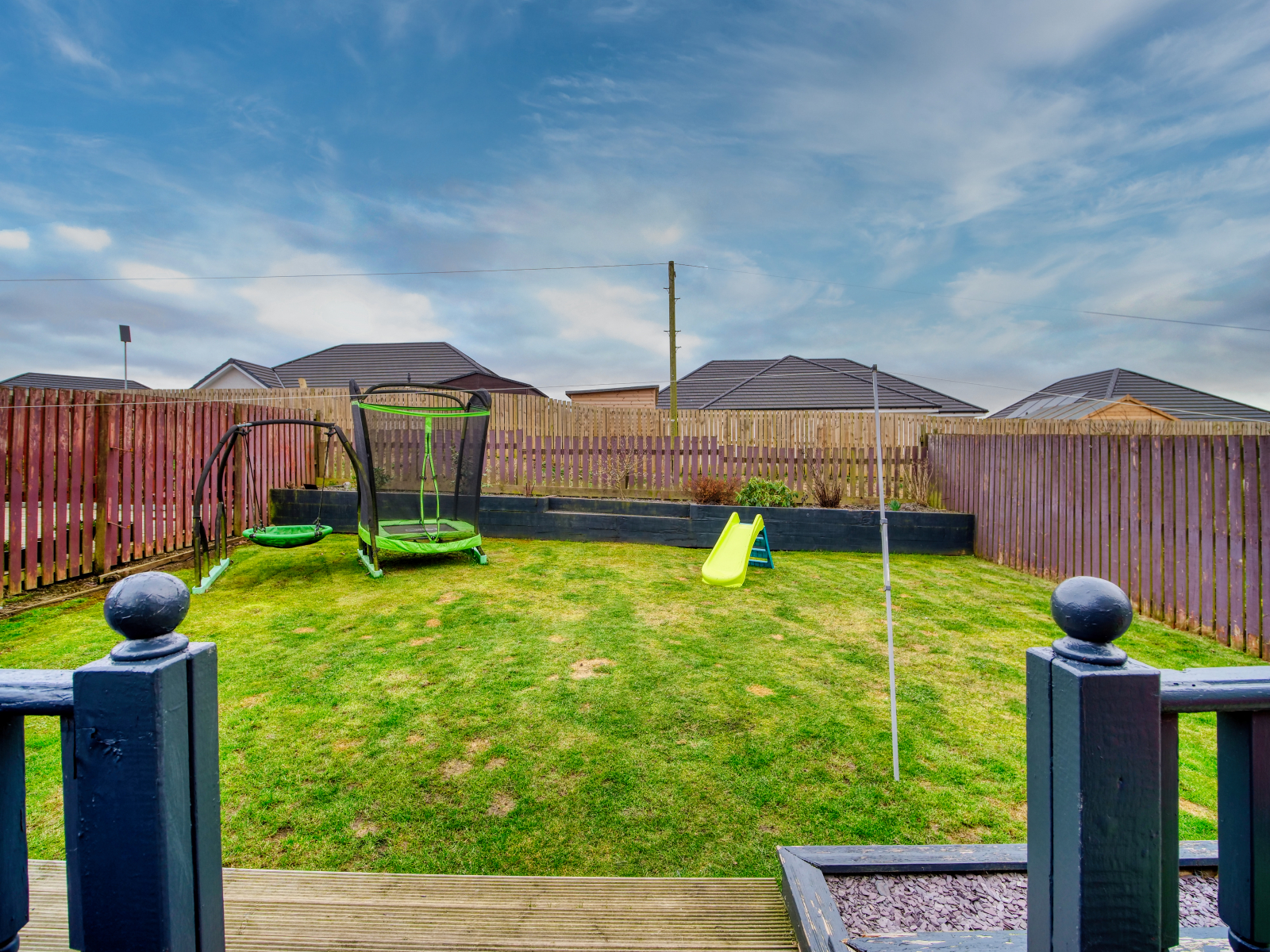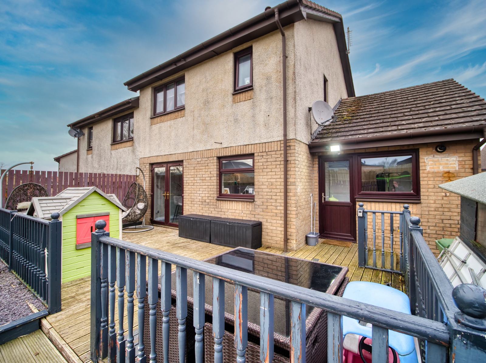 - Fully enclosed rear garden with decking, lawn and garden hut