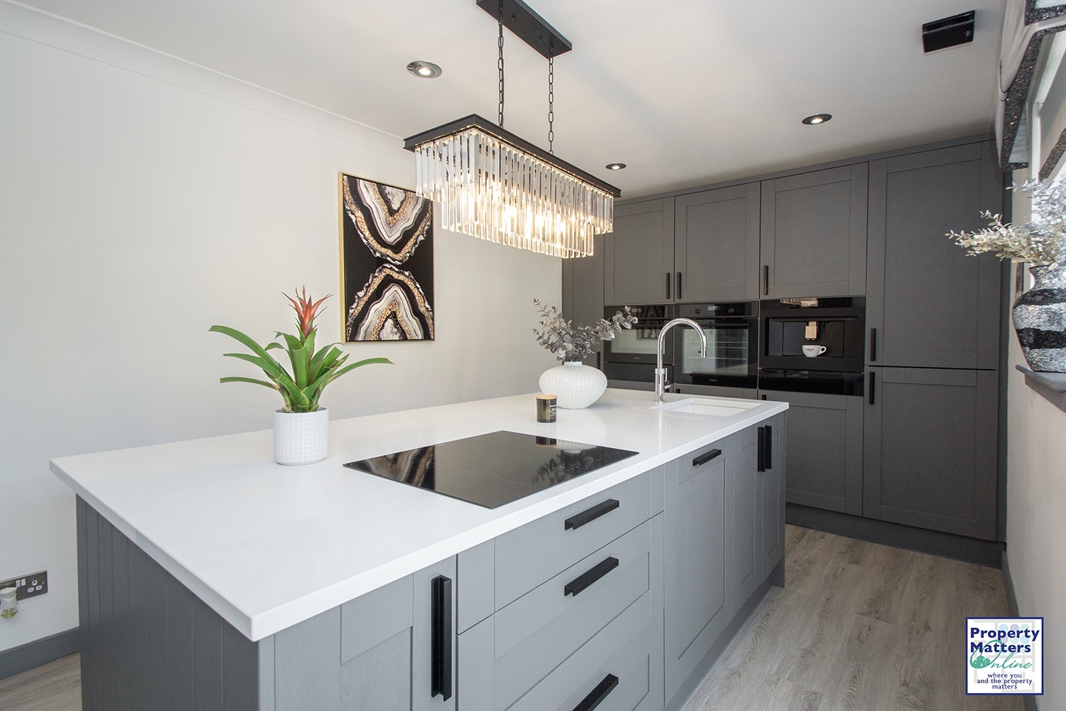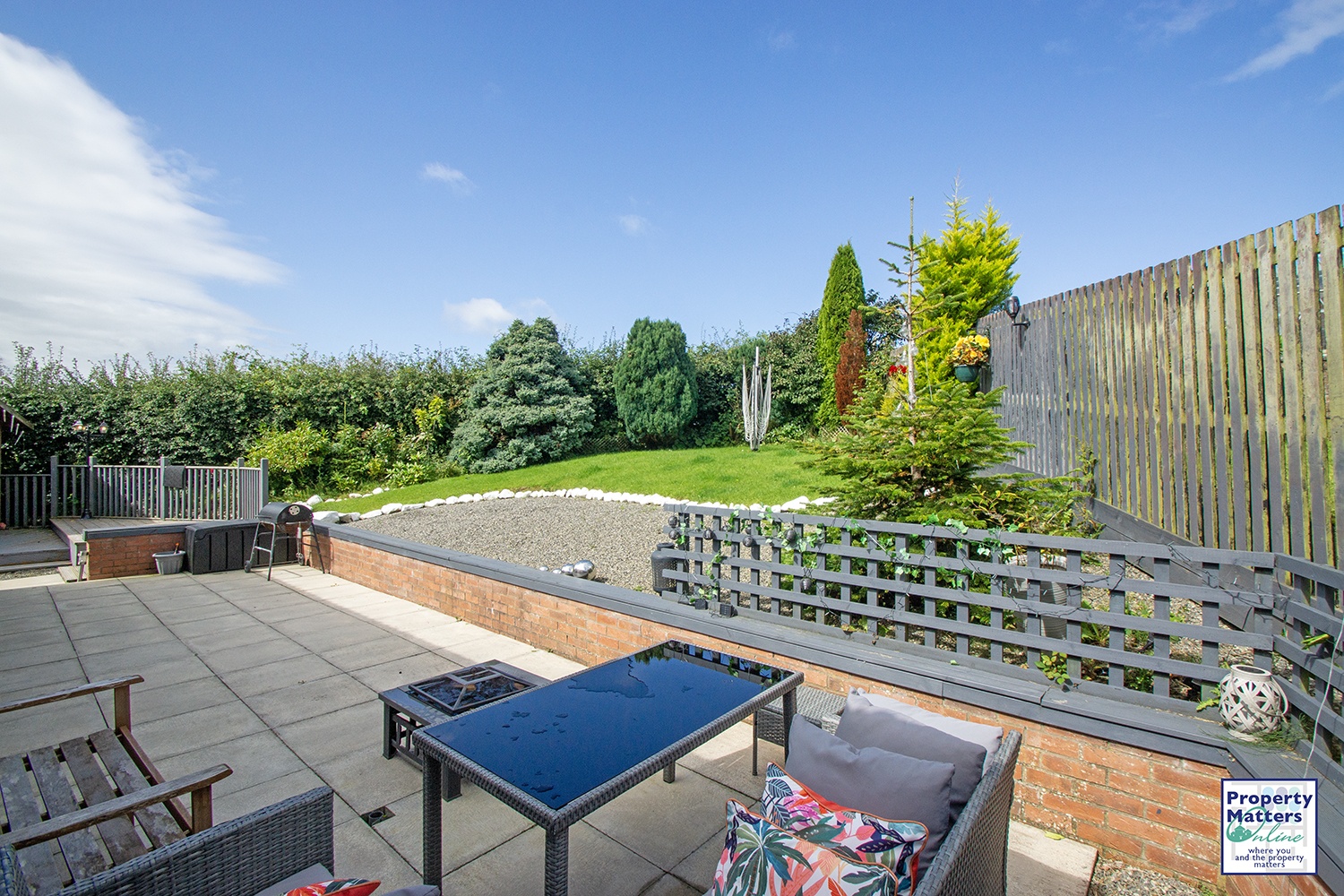 The property sits at the top of the cul-de-sac in a large plot with monobloc driveway. The fully enclosed rear garden has been fully landscaped with decking, patio chipped and grass areas. This is a great space for relaxation and entertainment. The garden also boasts a large wooden summer house which offers many different uses.
