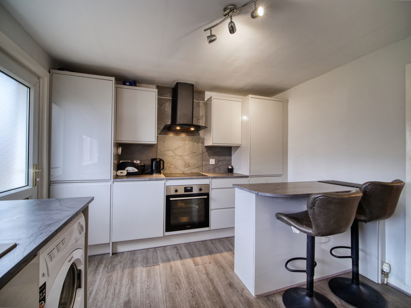- Integrated appliances including hob, extractor, oven and fridge freezer