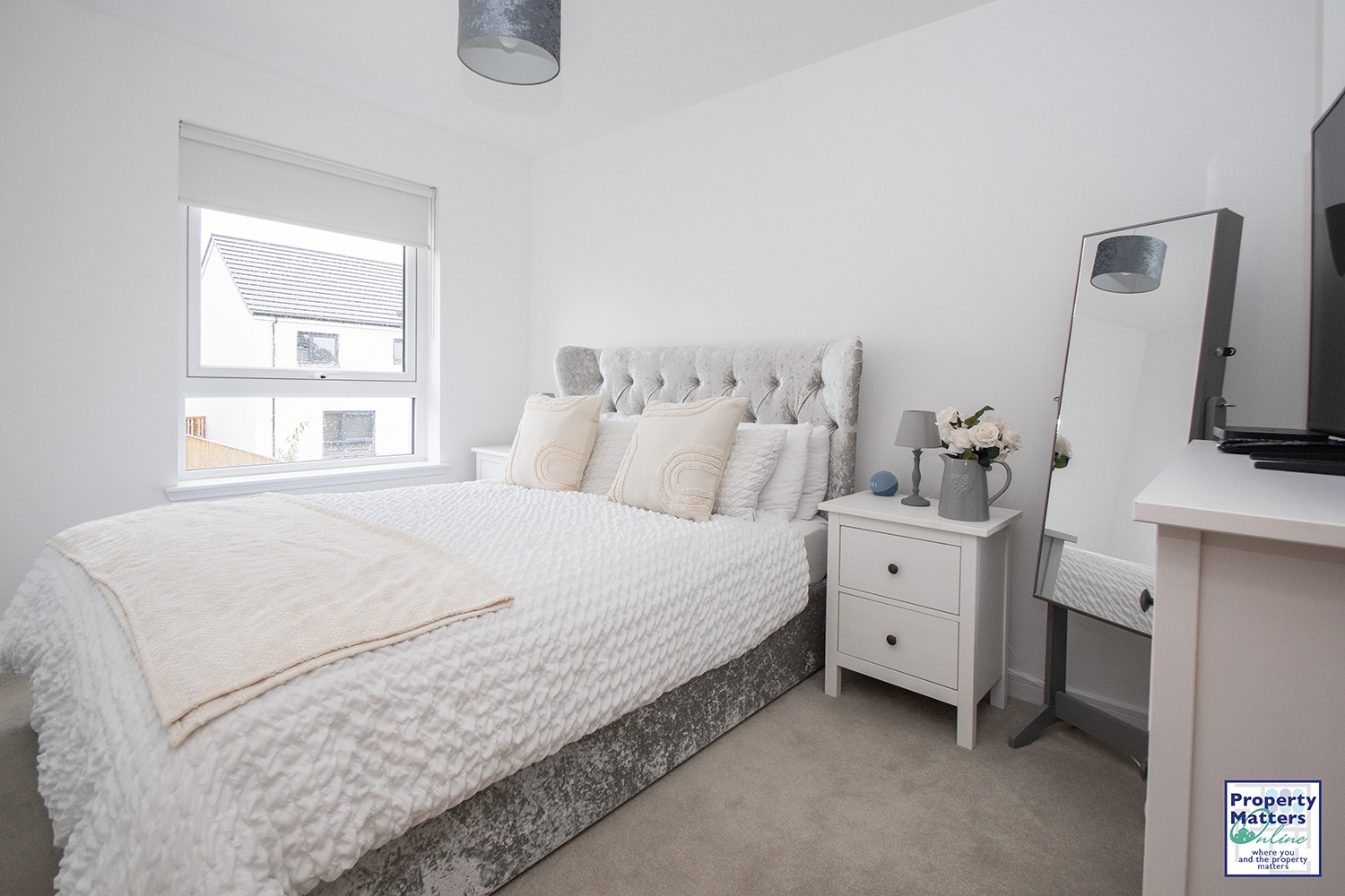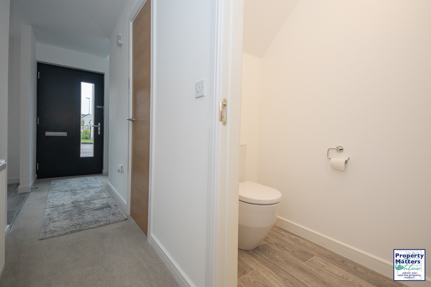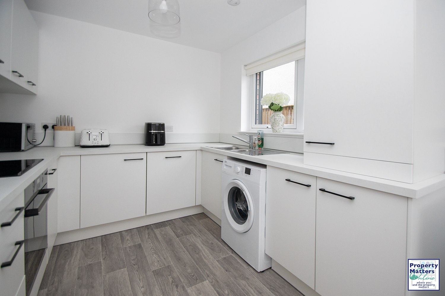 Constructed by renowned builders Mactaggart and Mickel, the accommodation offers modern family living over two levels. In greater detail, the accommodation comprises; welcoming entrance hallway with under-stairs storage and modern wc, Spacious rear-facing lounge with sliding patio doors which allow an abundance of natural light to flow through. Open plan dining kitchen which houses an ample range of base and wall units with complementary worktops and upstand, along with a range of integrated appliance which includes fridge freezer, dishwasher, induction hob, and oven.