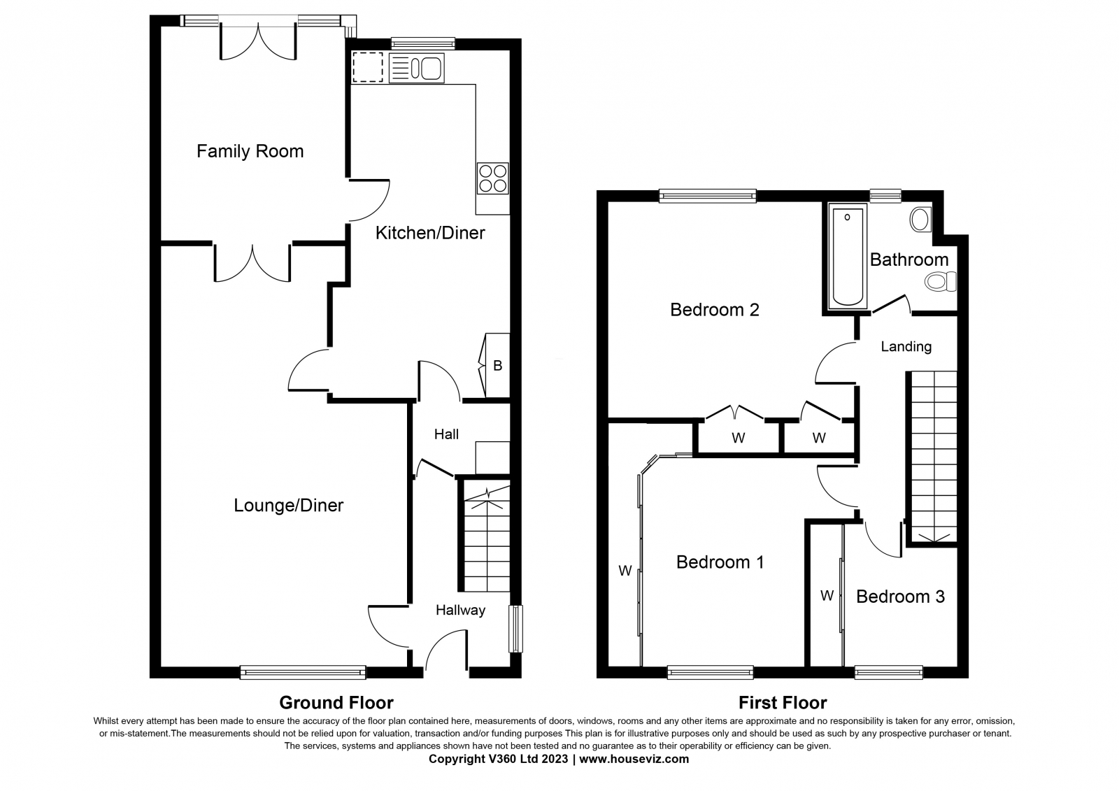 The accommodation is formed over two levels and comprises welcoming entrance hallway leading to the spacious hallway, spacious front facing lounge with rear dining area, family room with quality flooring and French doors giving access to rear garden, fitted dining kitchen which houses an ample range of base and wall units with complementary worktops and tiled splashback areas, plumbing for automatic washing machine and dishwasher. The first-floor houses three good sized bedrooms all with fitted storage. Modern contemporary bathroom with 3-piece suite and fitted vanity units.