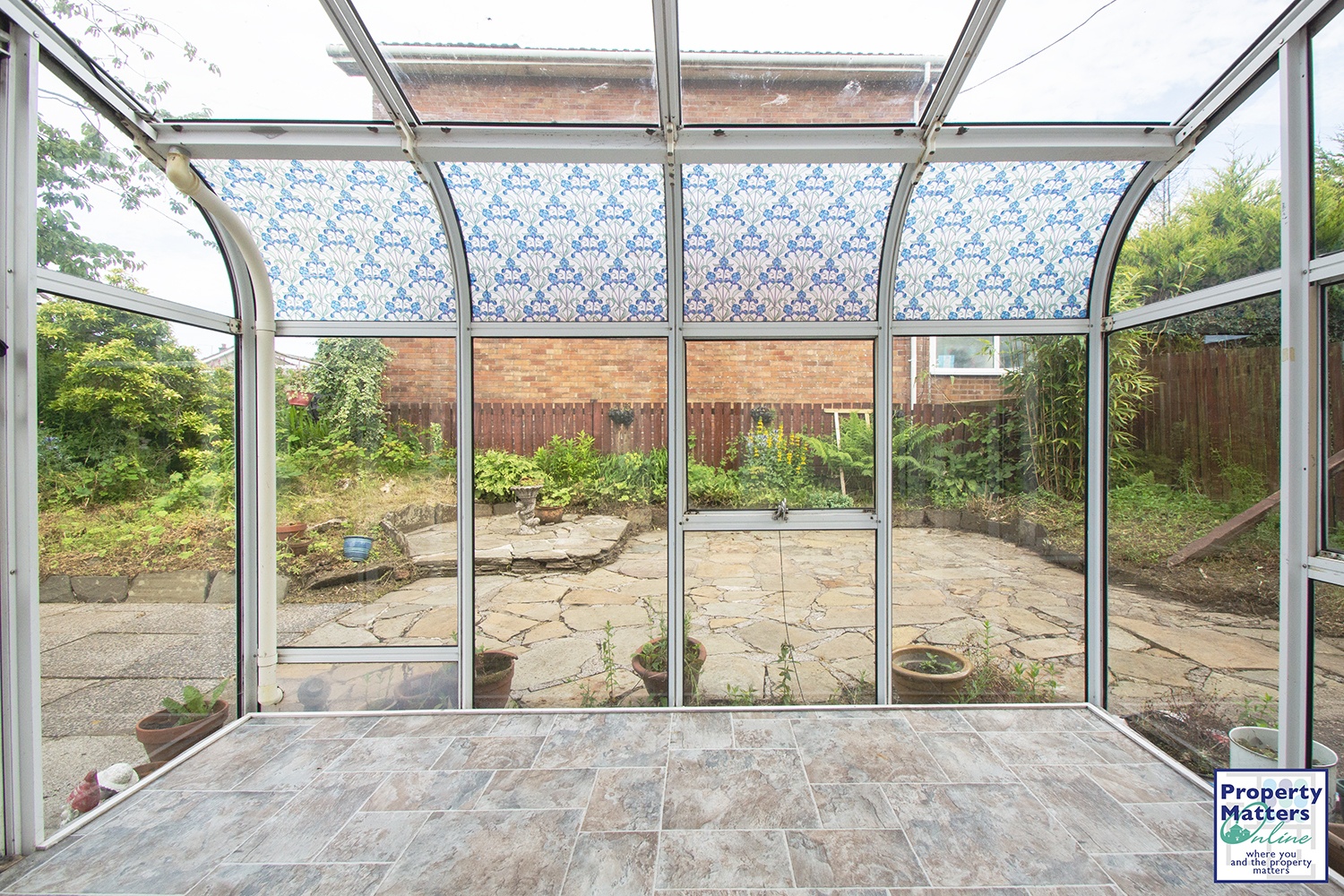 The accommodation offers entrance hallway leading to twin aspect lounge diner with patio doors to the rear garden. Side facing fitted kitchen housing an ample range of base and wall units with complementary worktops and tiled splash-back areas, integrated fridge, plumbing for washing machine and dishwasher. There is a rear facing conservatory entered from the kitchen overlooking the well-maintained garden area. On the upper level there are three well-proportioned bedrooms all with fitted storage. Three-piece family bathroom comprising wc, wash hand basin and bath with mixer shower and glass screen.