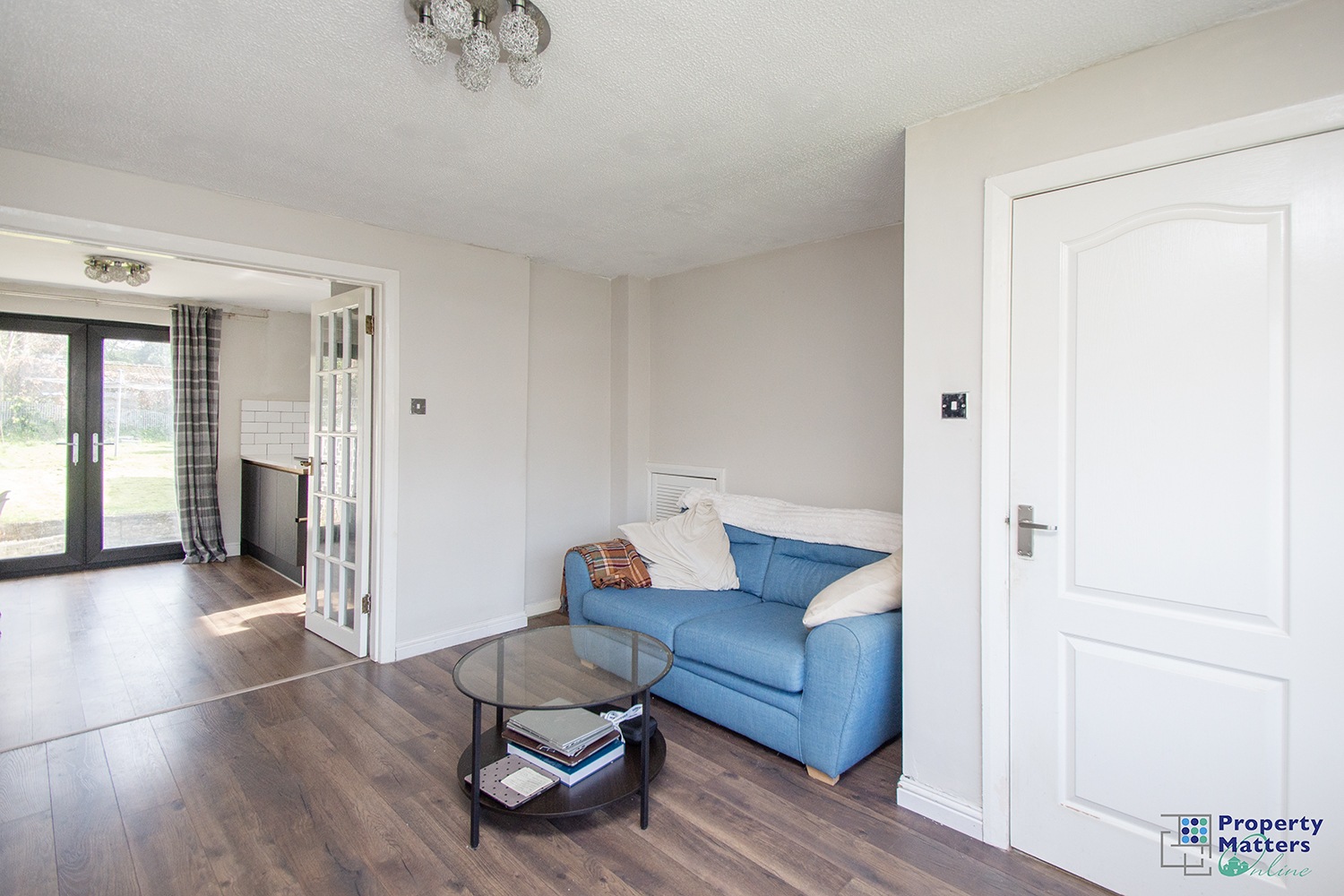 - Large French doors connecting lounge to dining kitchen
