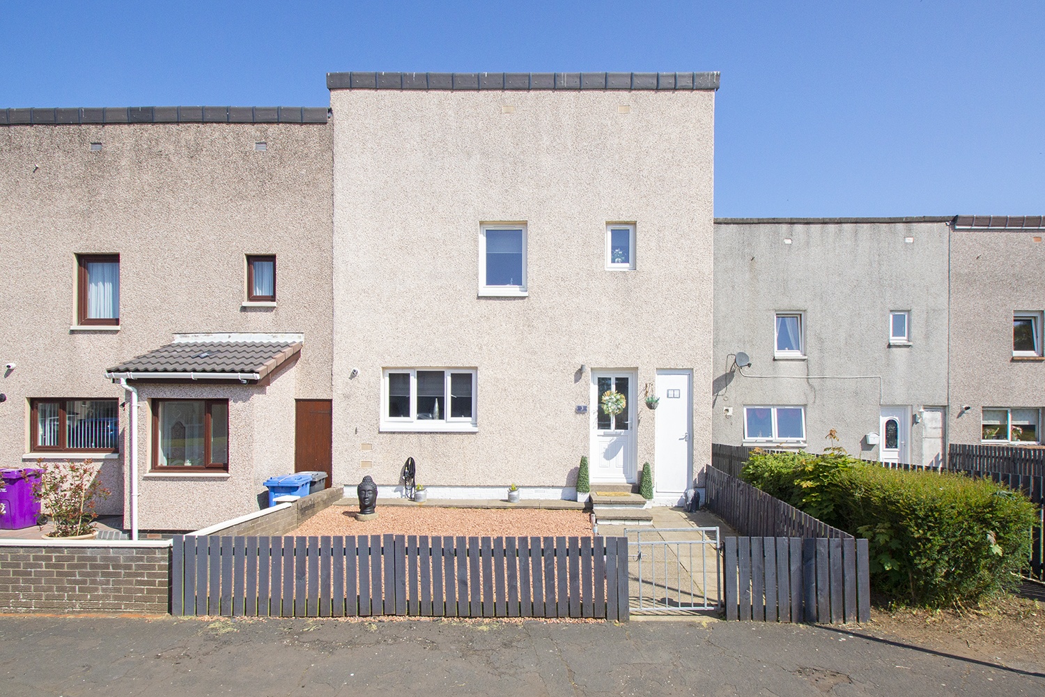 The property benefits from its own front garden which has been hard landscaped with chips and paving.