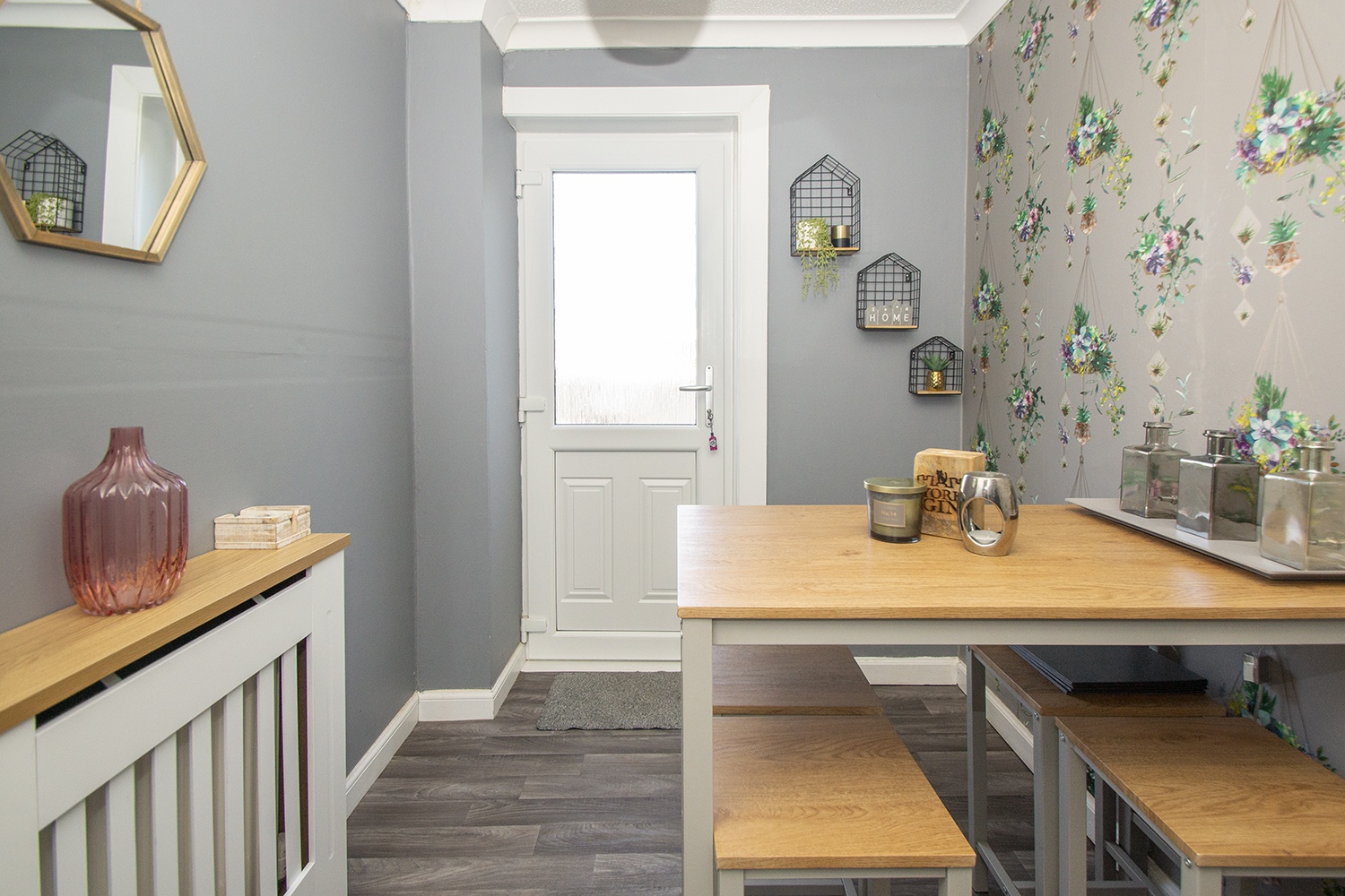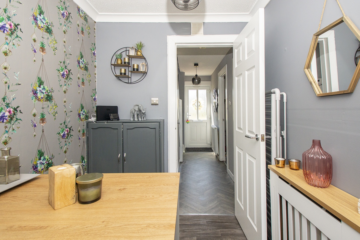 Flexible room currently used as dining room but could serve as home office etc. Modern décor. Door to rear garden.